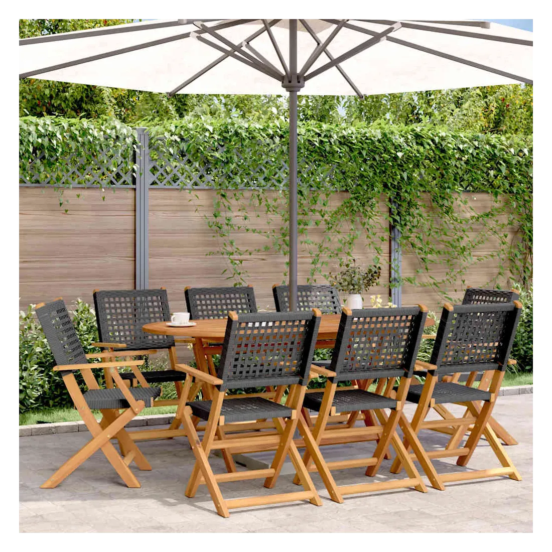Détendez-vous et profitez de l'extérieur dans ces confortables chaises de jardin pliantes ! Robuste et stable : le bois d'acacia massif est connu pour sa solidité et sa durabilité. Ses couleurs variées et ses grains uniques lui confèrent un aspect attrayant. Sa stabilité et sa résistance aux intempéries en font un matériau idéal pour la fabrication de meubles d'intérieur et d'extérieur.Matériau durable : la résine tressée, également connue sous le nom de poly rotin, est un matériau synthétique solide et nécessitant peu d'entretien qui ressemble au rotin naturel. Il est léger, facile à nettoyer et couramment utilisé pour les meubles d'extérieur en raison de sa durabilité et de ses propriétés de résistance aux intempéries.Facile à transporter et à ranger : la chaise peut être facilement pliée lorsqu'elle n'est pas utilisée, pour un rangement et un transport faciles.Conception pratique : la main courante en bois, pratique et plate, vous permet de poser vos mains dessus tout en profitant d'un moment en plein air.Diverses utilisations : la chaise pliable a un large éventail d'utilisations et peut facilement répondre à vos besoins dans n'importe quel environnement extérieur, comme les jardins, les patios, les balcons, etc. Bon à savoir :Pour que vos meubles d'extérieur restent beaux, nous vous recommandons de les protéger avec une housse imperméable.