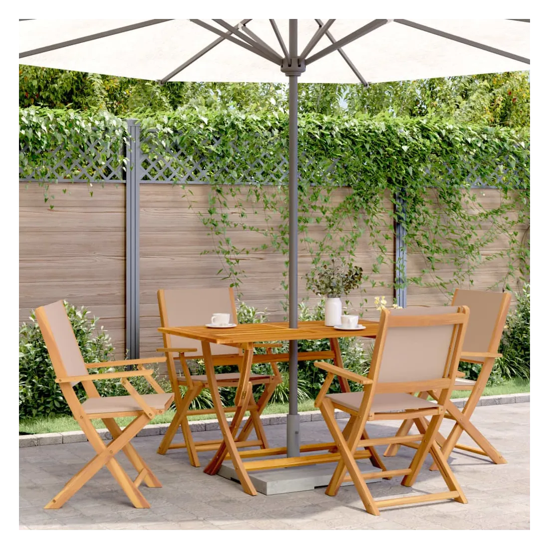 Chaises de jardin pliantes lot de 4 taupe tissu et bois massif