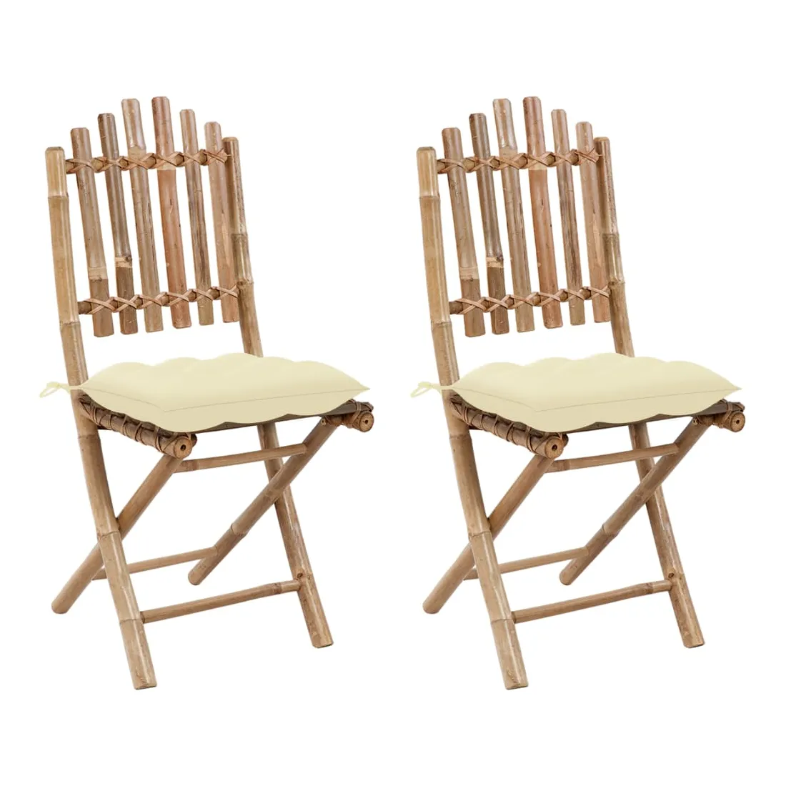 Chaises pliables de jardin lot de 2 avec coussins Bambou
