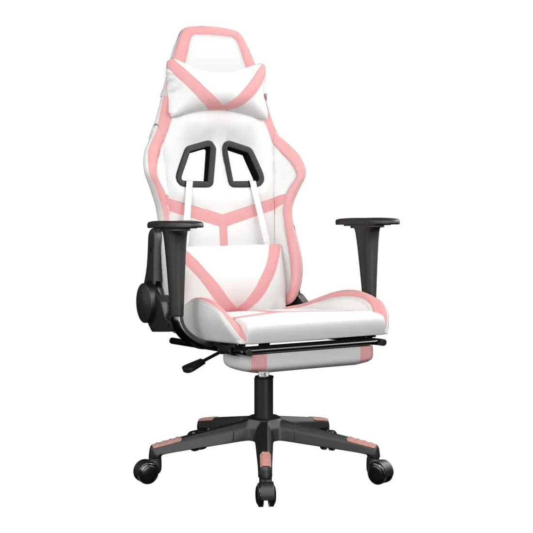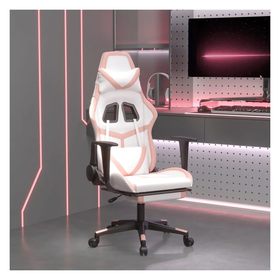 Chaise de jeu avec repose-pied Blanc et rose Similicuir