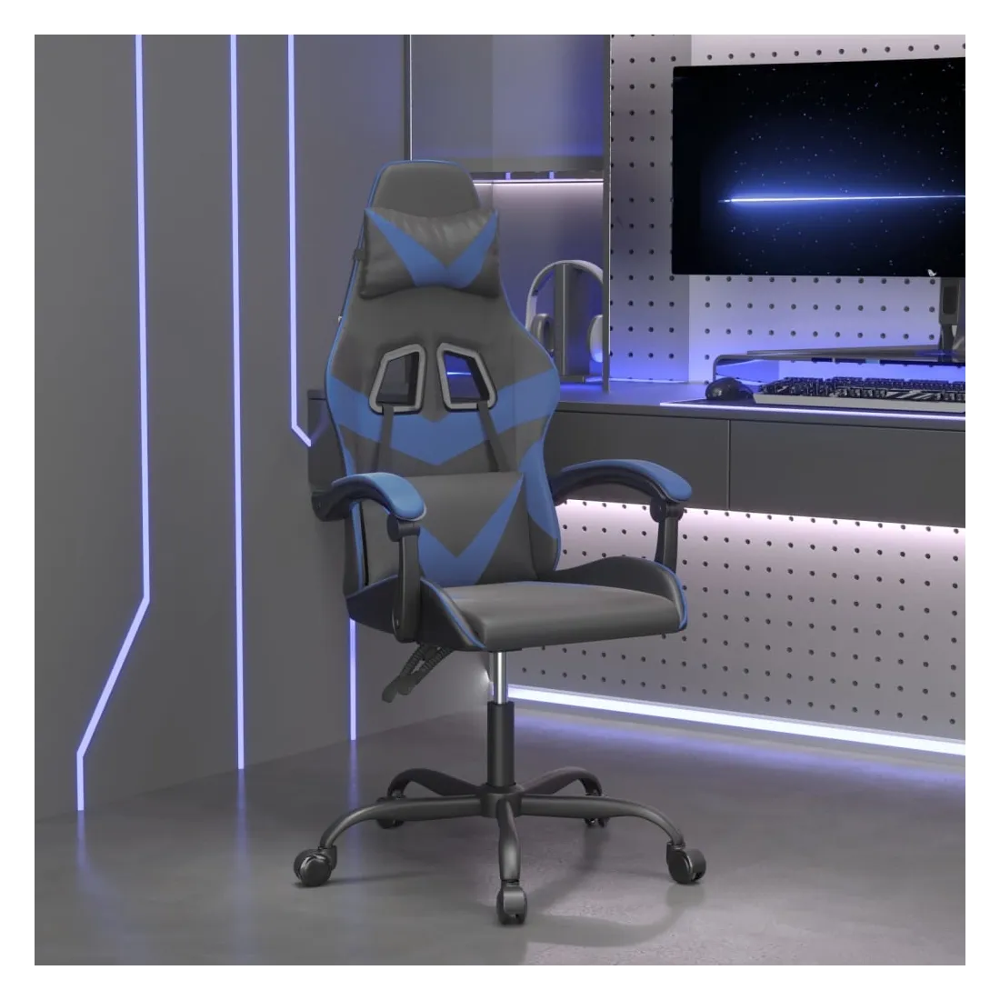 Chaise de jeu Noir et bleu Similicuir