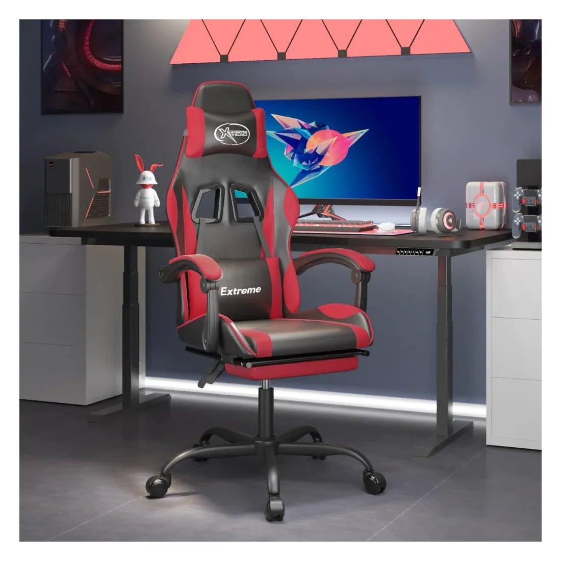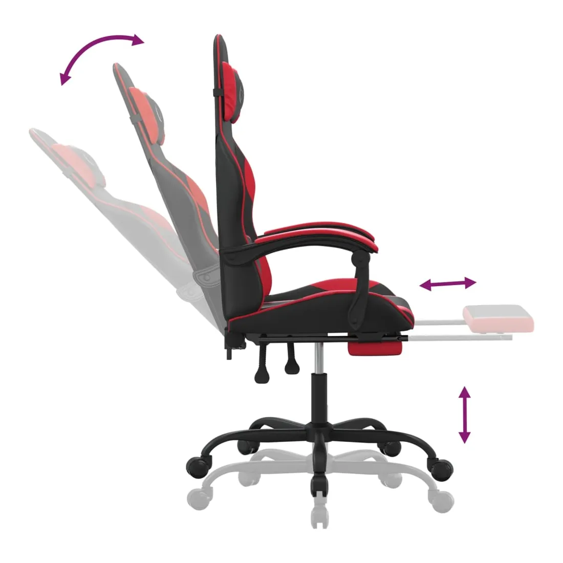 Chaise de jeu avec repose-pied Noir et rouge Similicuir