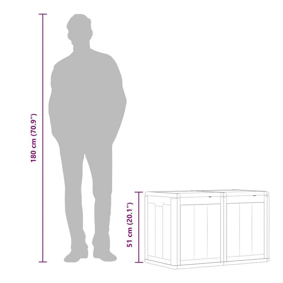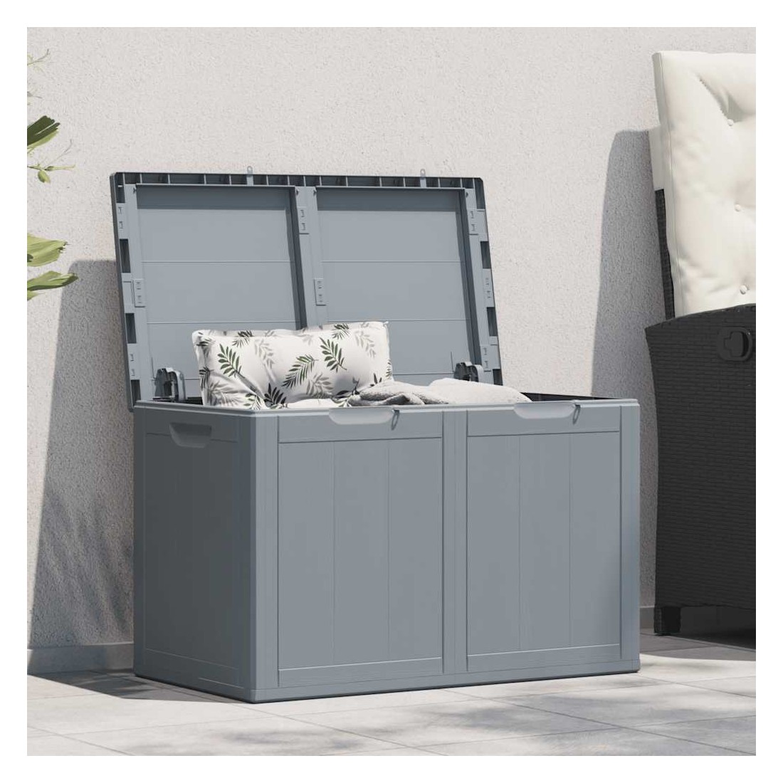 Cette boîte de rangement simple est une excellente solution pour désencombrer votre jardin, patio ou terrasse. Le coffre de rangement est fabriqué en matériau 100 % PP, ce qui le rend résistant aux intempéries, aux UV, léger et facile à déplacer. La boîte de rangement de jardin présente un design discret mais intemporel et s'intègre parfaitement à votre décor intérieur et extérieur. De plus, la boîte de rangement de jardin offre un grand espace de rangement pour les coussins, les oreillers et autres articles de ménage ou de jardin à portée de main. Remarque : afin de prolonger la durée de vie des meubles d'extérieur, nous vous recommandons de les protéger avec une housse imperméable.