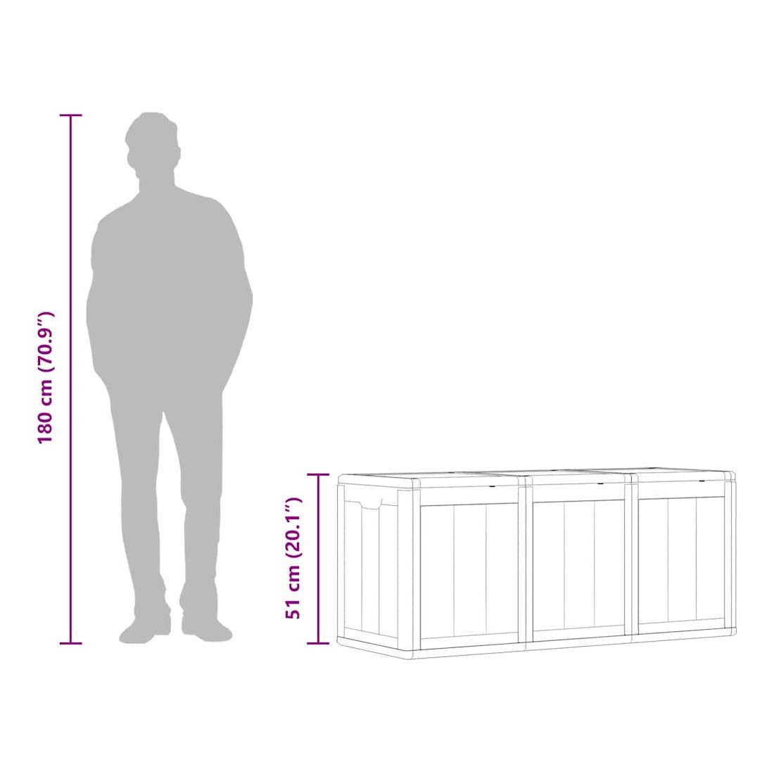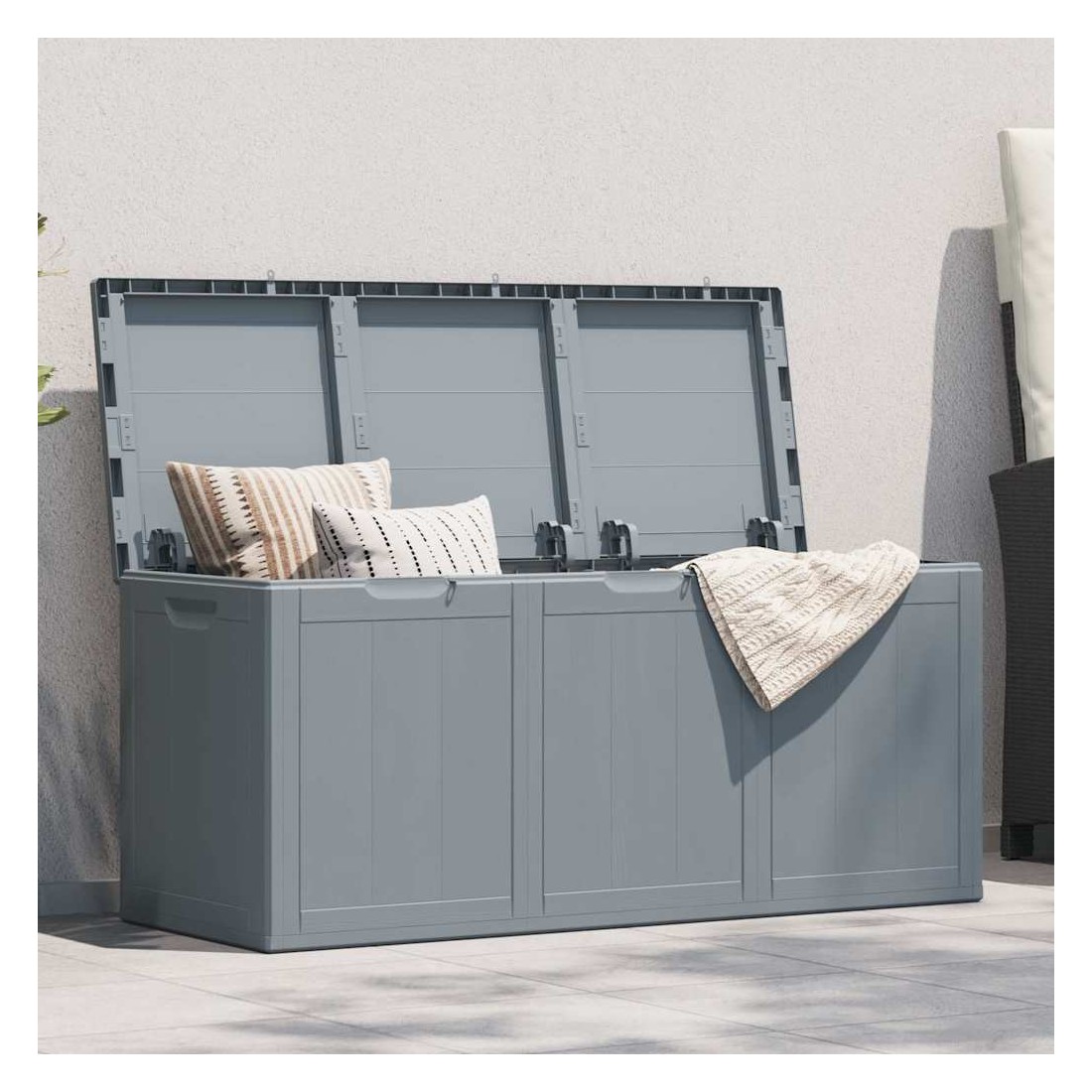 Cette boîte de rangement simple est une excellente solution pour désencombrer votre jardin, patio ou terrasse. Le coffre de rangement est fabriqué en matériau 100 % PP, ce qui le rend résistant aux intempéries, aux UV, léger et facile à déplacer. La boîte de rangement de jardin présente un design discret mais intemporel et s'intègre parfaitement à votre décor intérieur et extérieur. De plus, la boîte de rangement de jardin offre un grand espace de rangement pour les coussins, les oreillers et autres articles de ménage ou de jardin à portée de main. Remarque : afin de prolonger la durée de vie des meubles d'extérieur, nous vous recommandons de les protéger avec une housse imperméable.