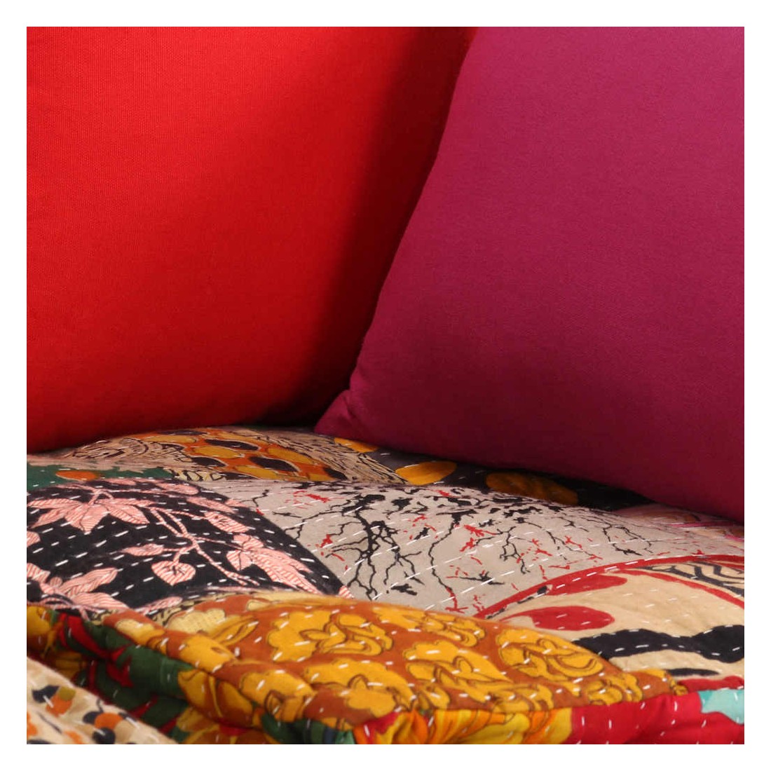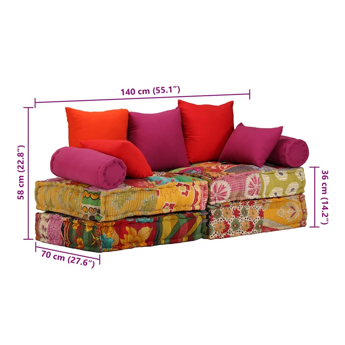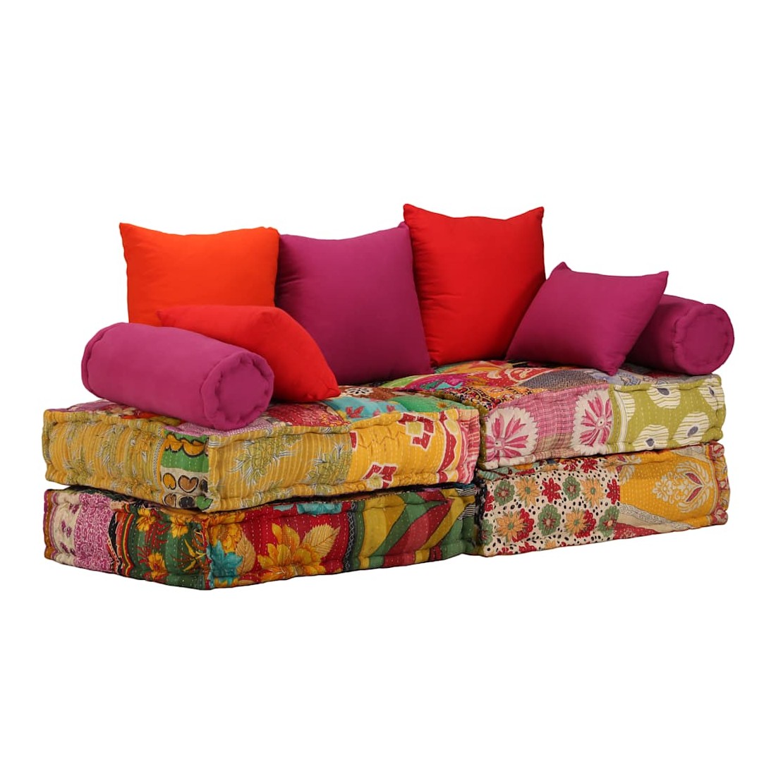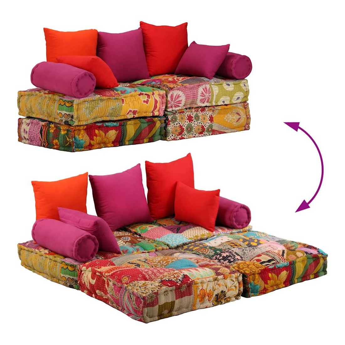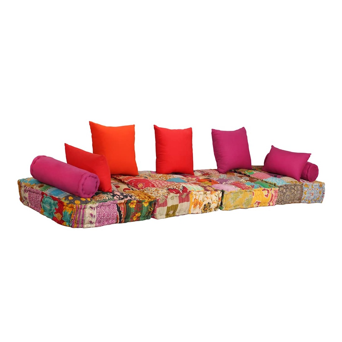 Quoi de mieux qu'un pouf modulaire très confortable pour compléter votre mobilier de salon ? Notre pouf convertible sera un choix parfait pour vous détendre et profiter de votre temps libre dans le plus grand confort. Le canapé modulaire au design unique ajoutera une touche de style exotique à votre intérieur. Ce canapé-lit polyvalent a un design modulaire. Vous pouvez facilement combiner les sections modulaires en différentes configurations et les transformer en canapé, lit ou pouf - comme vous voulez ! Il sera idéal pour les soirées de cinéma en famille ou lorsque les enfants ont des amis pour jouer à des jeux vidéo, et peut également être utilisé pour profiter du temps sur la véranda. Grâce au revêtement en tissu coton et au rembourrage épais, le canapé est doux et confortable. Les oreillers de décoration seront un supplément décoratif tout en offrant un confort supplémentaire. Remarque : La conception de patchwork peut varier d'une pièce à l'autre, rendant chacun de nos canapé-lits unique. La livraison est aléatoire.