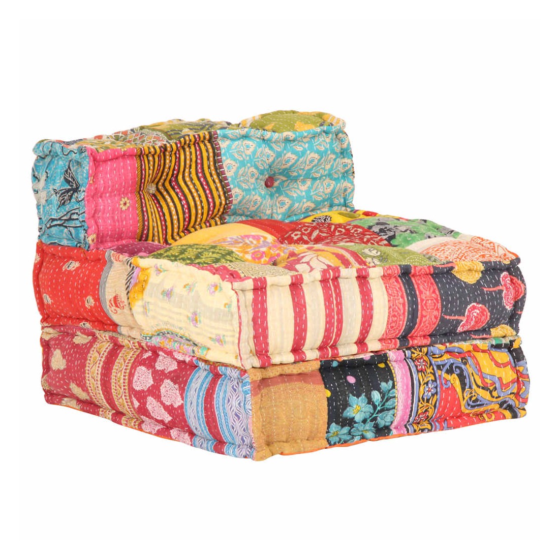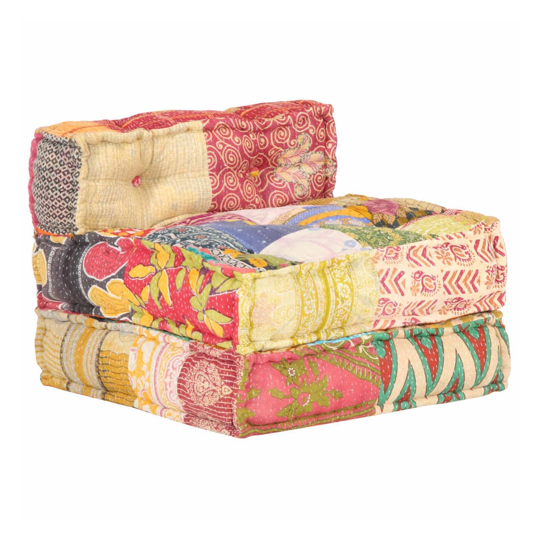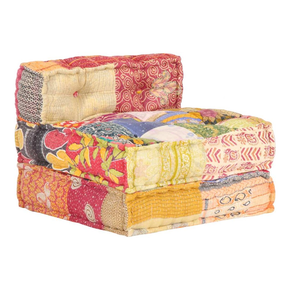Ajoutez une touche de style exotique à votre intérieur avec ce pouf ! Ce canapé polyvalent présente une conception modulaire. Vous pouvez facilement combiner les sections modulaires dans différentes configurations et les transformer en une chaise longue, une chaise simple, des poufs ou tout ce que vous aimez ! Le canapé convertible est extrêmement doux et facile à entretenir grâce au revêtement en tissu de coton et au rembourrage épais. Ce canapé modulable est également idéal pour profiter du beau temps sur le porche. Remarque importante: la conception à patchwork peut varier d'une pièce à l'autre, rendant chacun de canapés unique.