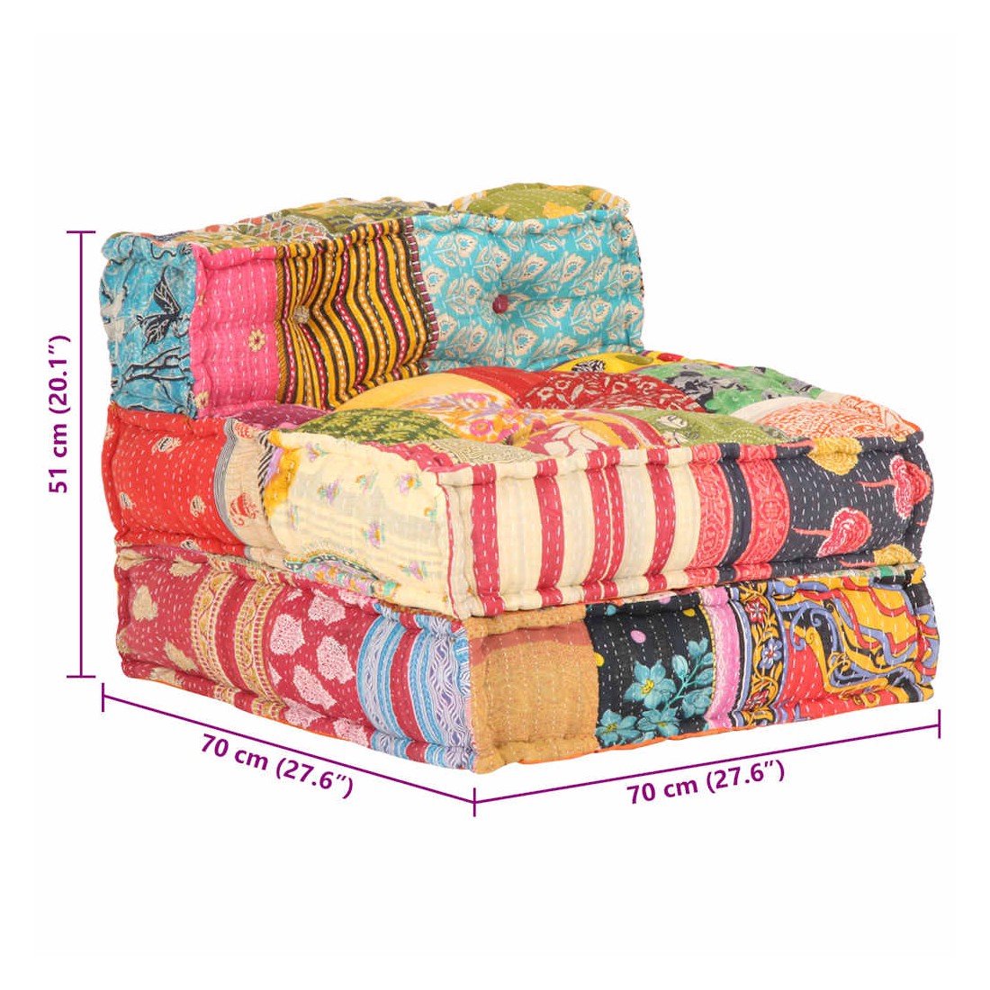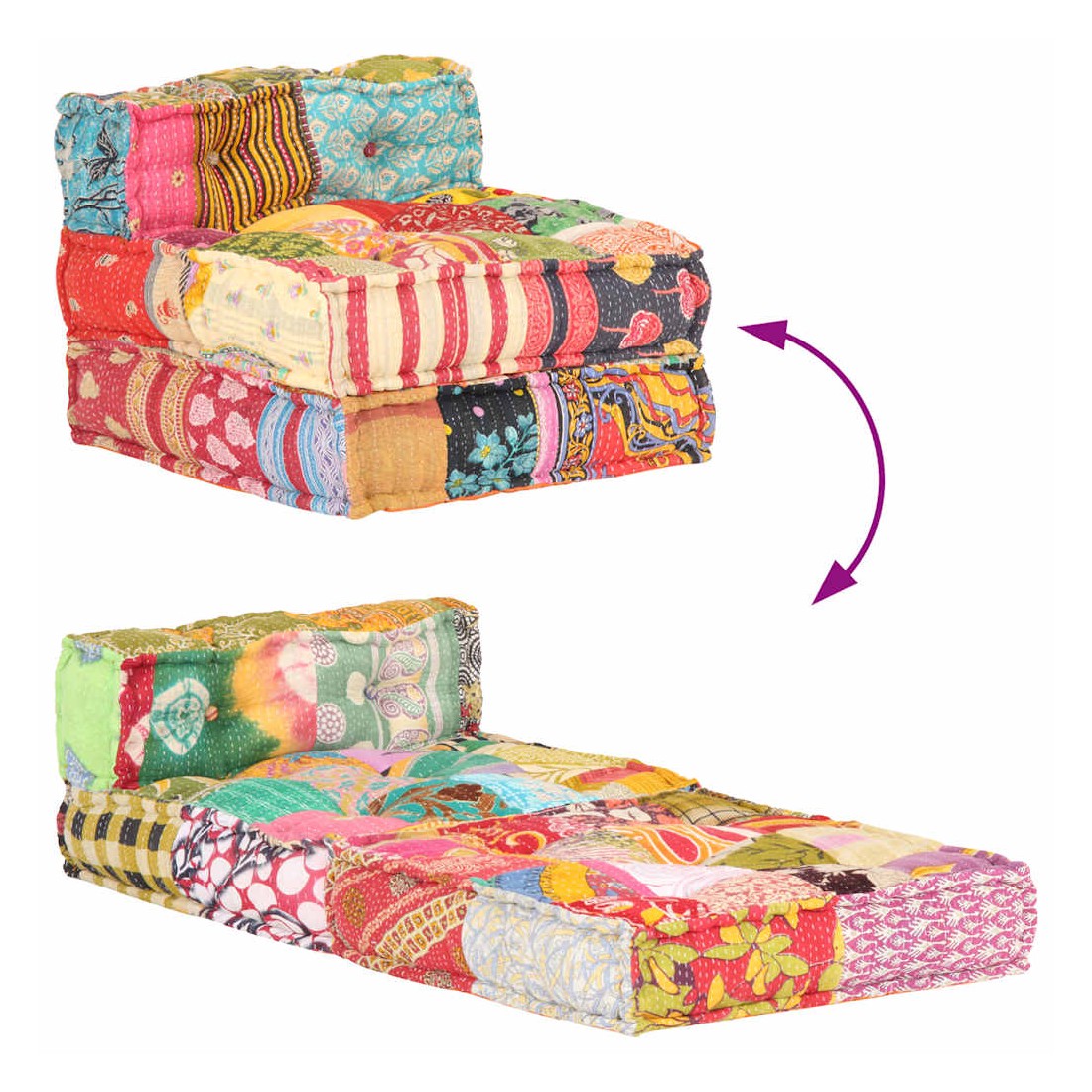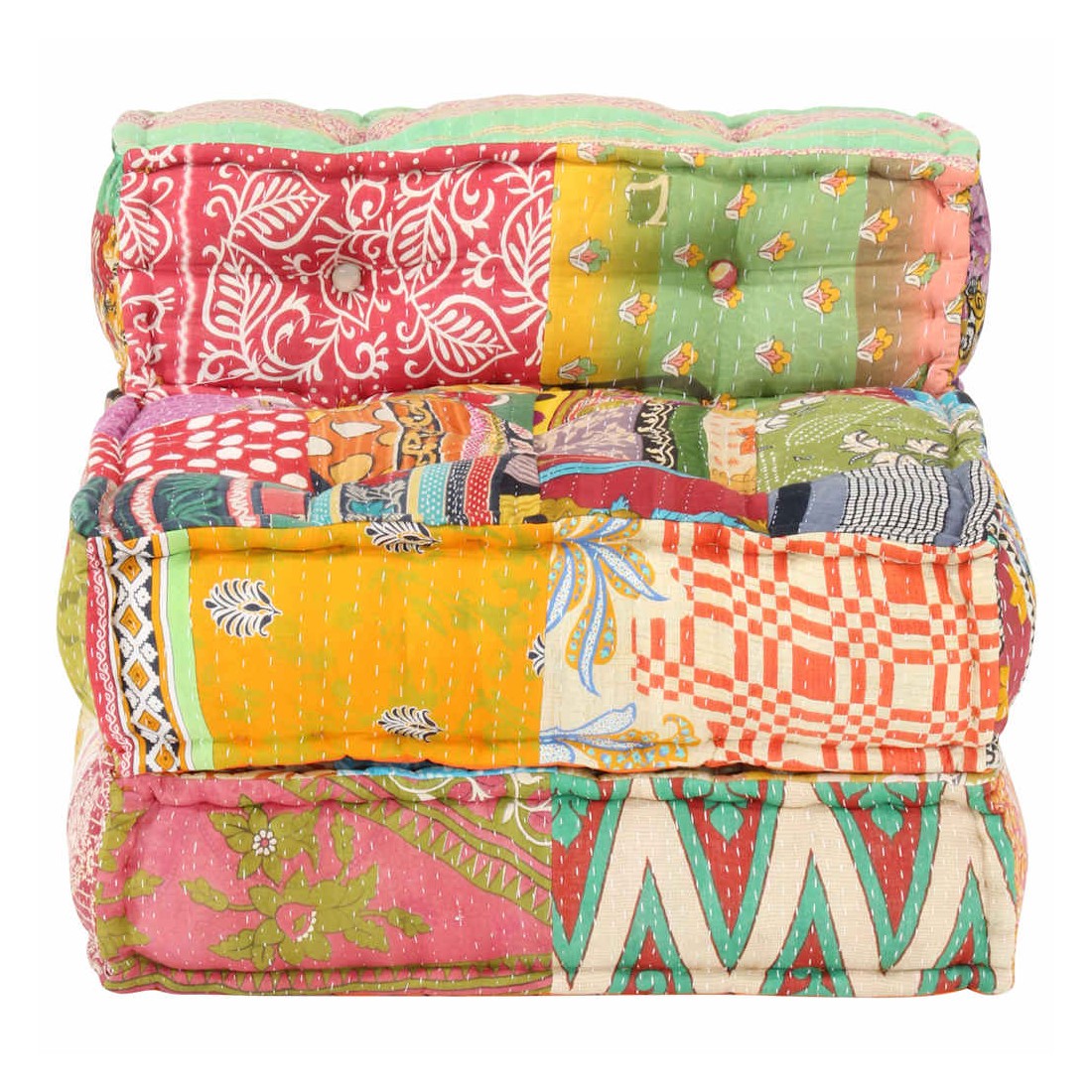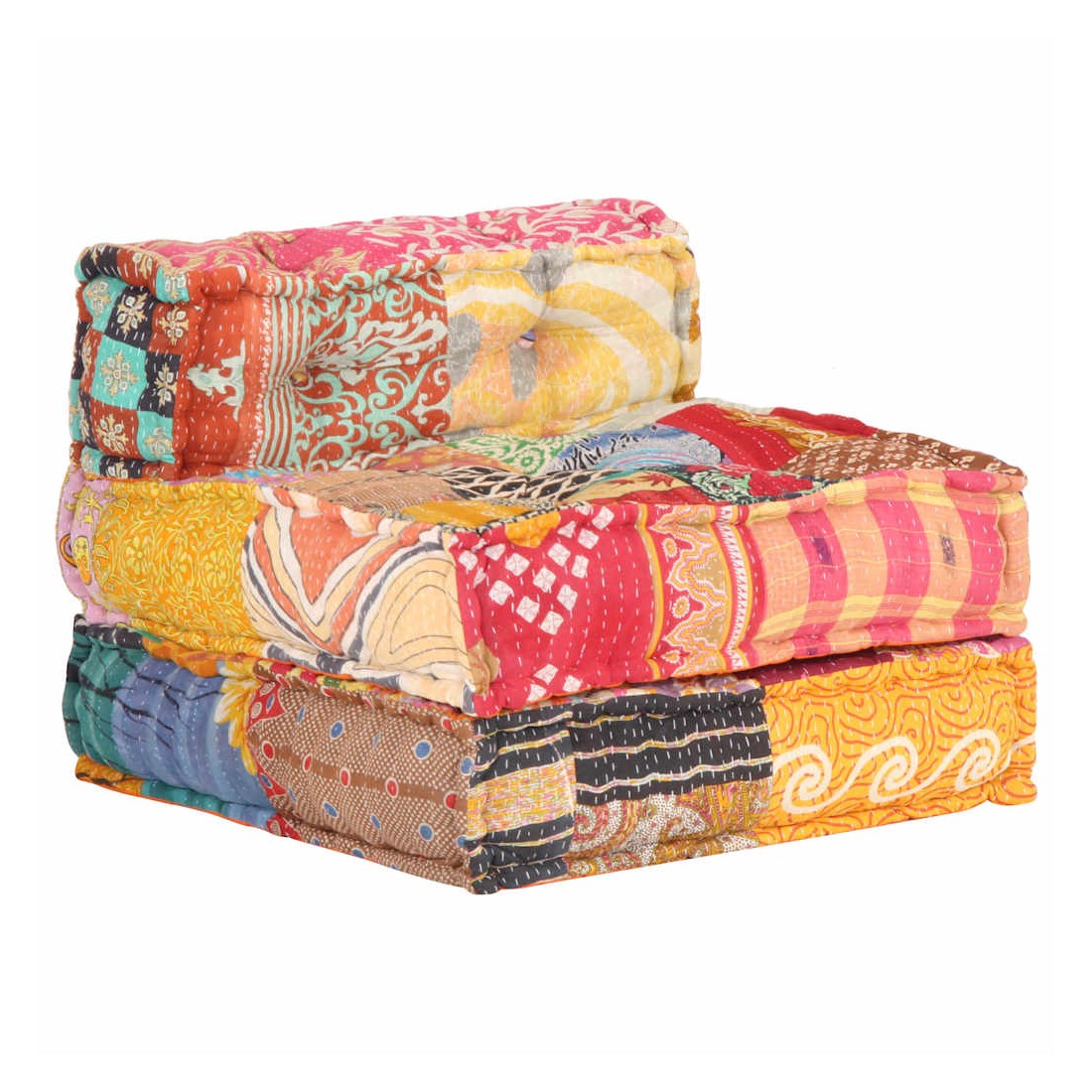 Ajoutez une touche de style exotique à votre intérieur avec ce pouf ! Ce canapé polyvalent présente une conception modulaire. Vous pouvez facilement combiner les sections modulaires dans différentes configurations et les transformer en une chaise longue, une chaise simple, des poufs ou tout ce que vous aimez ! Le canapé convertible est extrêmement doux et facile à entretenir grâce au revêtement en tissu de coton et au rembourrage épais. Ce canapé modulable est également idéal pour profiter du beau temps sur le porche. Remarque importante: la conception à patchwork peut varier d'une pièce à l'autre, rendant chacun de canapés unique.