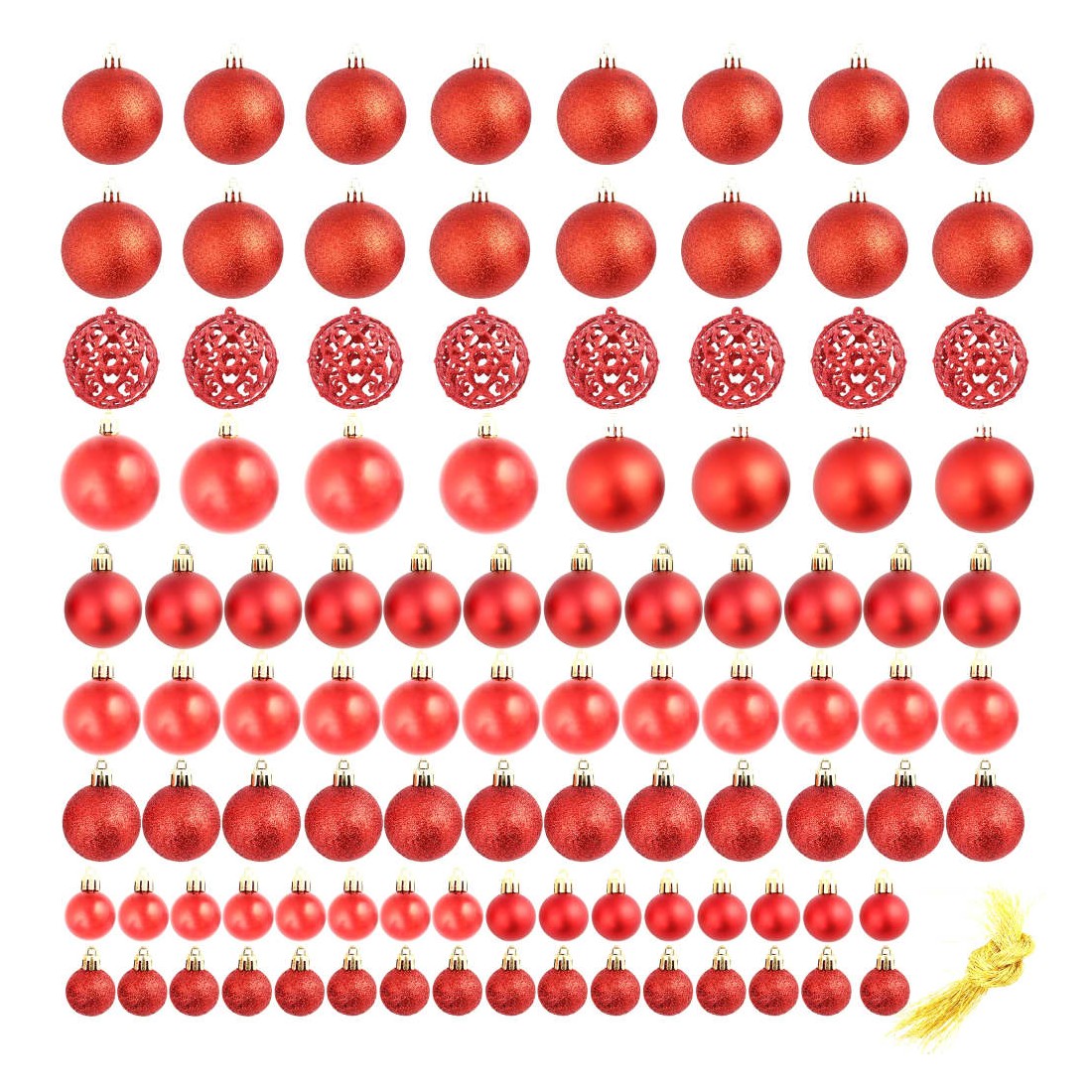 Ensemble de boules de Noël 100 pcs 3/4/6 cm Rouge
