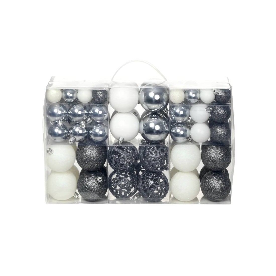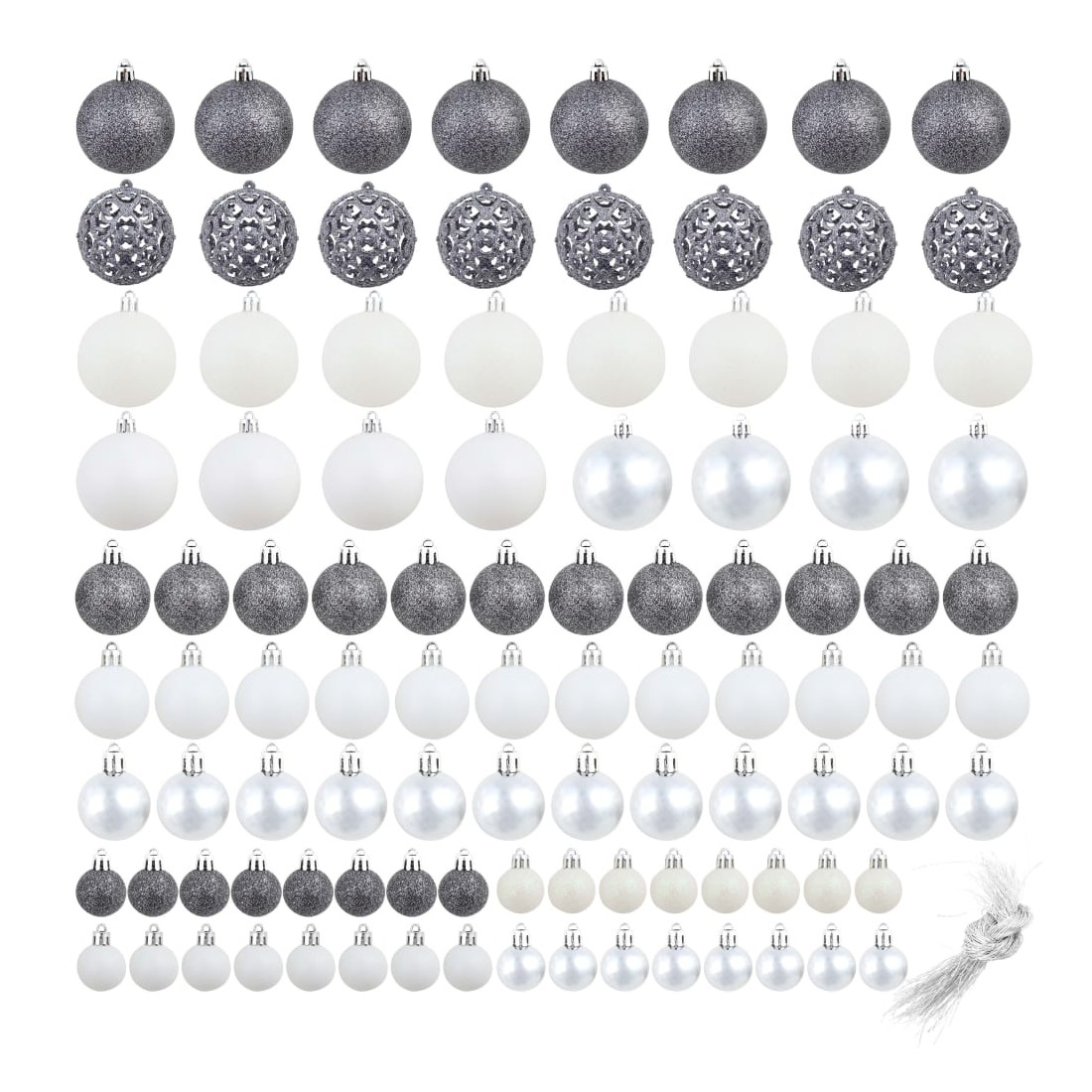 Ensemble de boules de Noël 100 pcs 3/4/6 cm Blanc/Gris