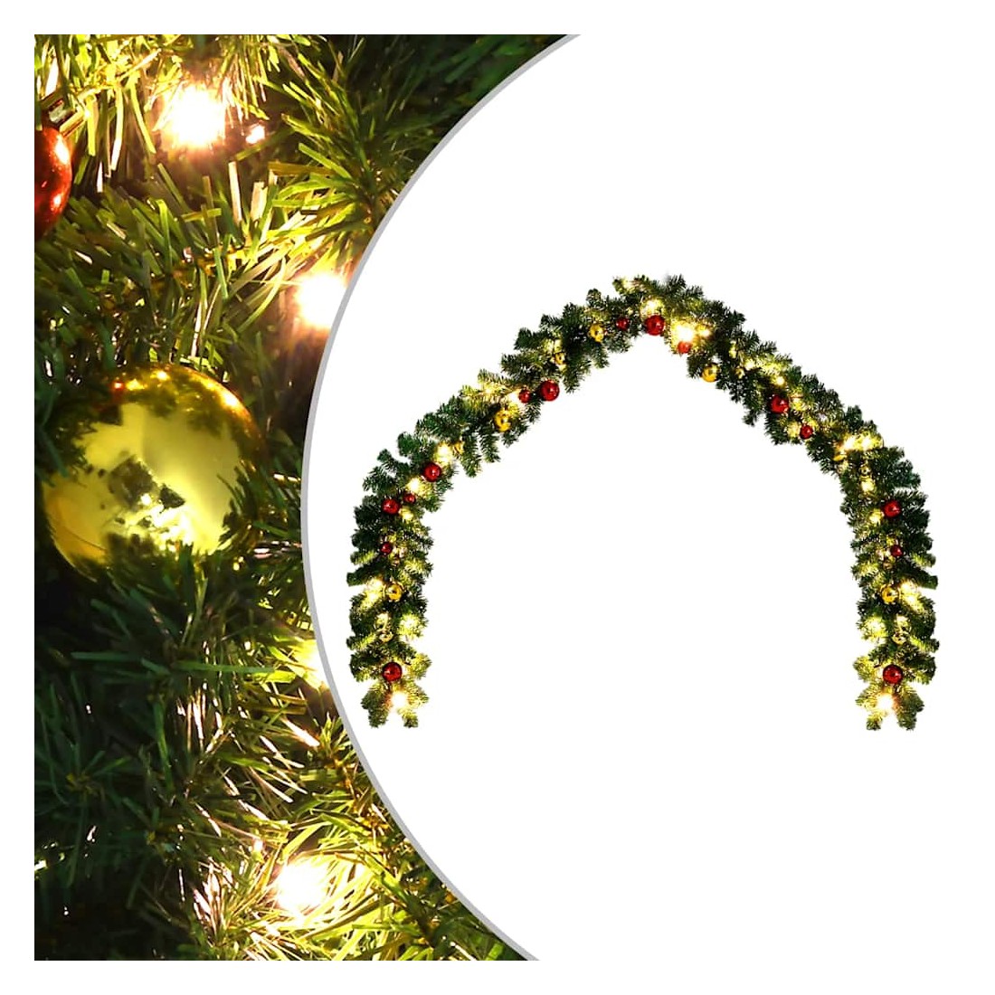 Cette guirlande de Noël luxueusement épaisse avec des boules et des lumières LED est un ajout idéal pour votre rampe, plafond, cheminée ou fenêtres et créera l'atmosphère parfaite pour ce Noël à venir. Elle sera spectaculaire où que vous l'accrochiez. La guirlande verte est en PVC, qui résiste aux intempéries. La guirlande lumineuse contient 300 LED haute puissance, très économes en énergie et émettent une lumière chaude et brillante. Conçue avec 4 effets d'éclairage différents ; éclairage continu, scintillement, fondu enchaîné et mode d'éclairage lent, les lumières s'illumineront magnifiquement selon votre motif préféré. Ce sera un véritable accroche-regard, surtout le soir. Dans la maison, la guirlande servira également de lumière d'ambiance. Lorsqu'elle n'est pas utilisée, elle peut être facilement rangée pour les prochaines vacances. L'assemblage est facile. Créez l'ambiance de vacances parfaite avec notre jolie guirlande de Noël ! Veuillez noter :l'USB inclus n'est pas étanche, donc cette partie doit éviter l'eau, mais grâce au câble d'extension, la décoration de Noël peut être utilisée à l’extérieur car le câble et le produit sont étanches.Ce produit est doté d'un connecteur USB, mais la source d'alimentation certifiée de USB 5V n'est pas incluse.