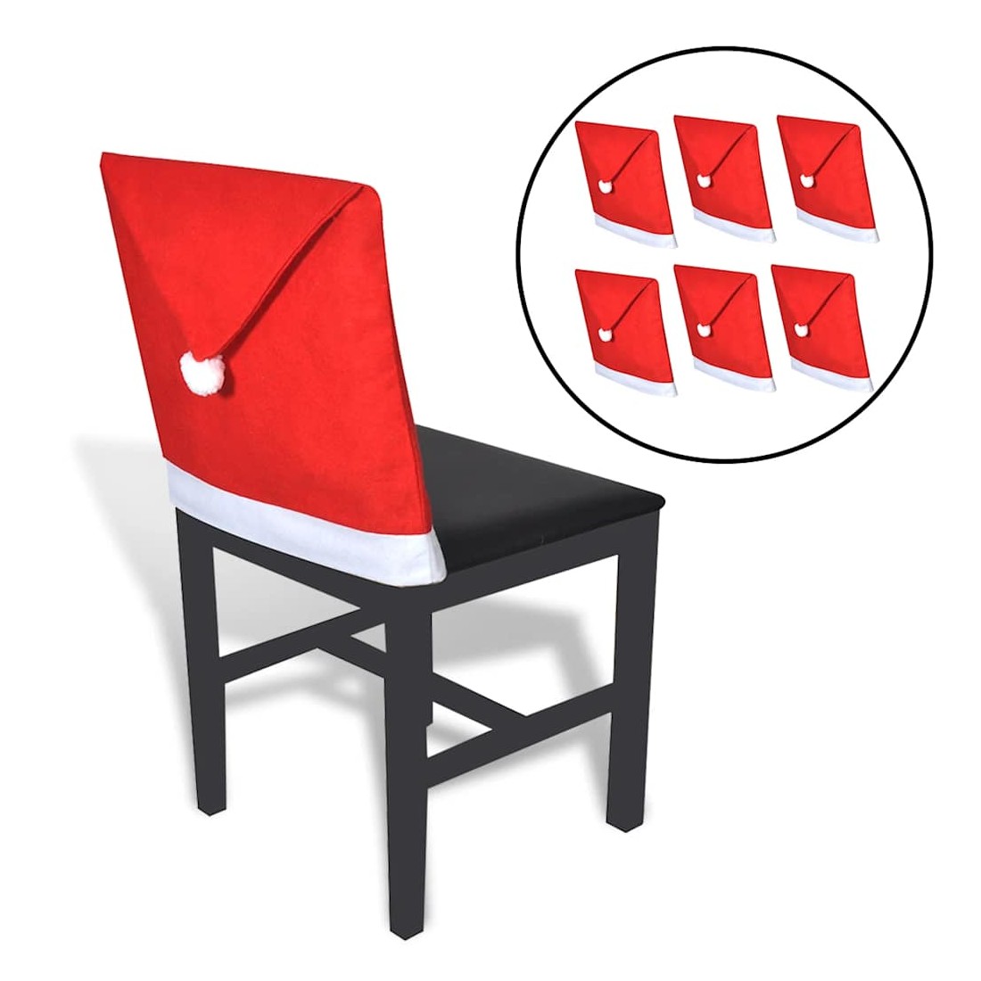 Cet ensemble de housses de dossier de chaise sous forme de bonnet de Père Noël offre un moyen rapide et facile de décorer vos chaises et ajoute une atmosphère de Noël à votre intérieur. Il est idéal pour les fêtes ou les dîners de Noël. Fabriquées en feutre de polyester de haute qualité, ces housses de dossier de chaise sont confortables et chaudes au toucher. Elles ont l'air mignon avec un pompon suspendu à l'arrière. Les housses se glissent facilement sur le dessus de vos chaises sans accoudoirs et offrent une couverture de l'avant vers l'arrière. La taille convient à la plupart des chaises. La livraison comprend 6 housses de dossier de chaise.