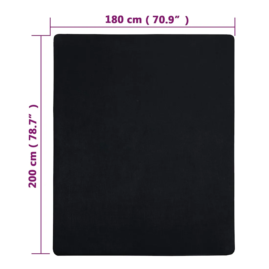 Draps-housses Jersey 2 pcs Noir 180x200 cm Coton