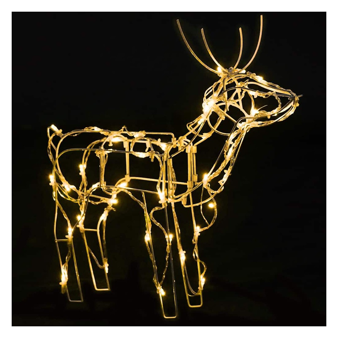 Avec ses LED, ce cordon lumineux de Noël attrayant en forme de 3 rennes est parfait pour décorer votre jardin, balcon et espace de vie intérieur. Le produit est en PVC et possède un cadre en acier. Le design distinctif attirera certainement l'attention de vos invités et de vos voisins, ajoutant une touche d'élégance à votre espace de vie. Cette jolie décoration de Noël est résistante à l'eau et convient donc aussi bien à l'intérieur qu'à l'extérieur. C'est sans aucun doute un excellent cadeau de Noël pour votre famille et vos amis en cette saison de Noël à venir. Remarque : ce produit est doté d'un connecteur USB, mais la source d'alimentation certifiée de USB 5V n'est pas incluse.