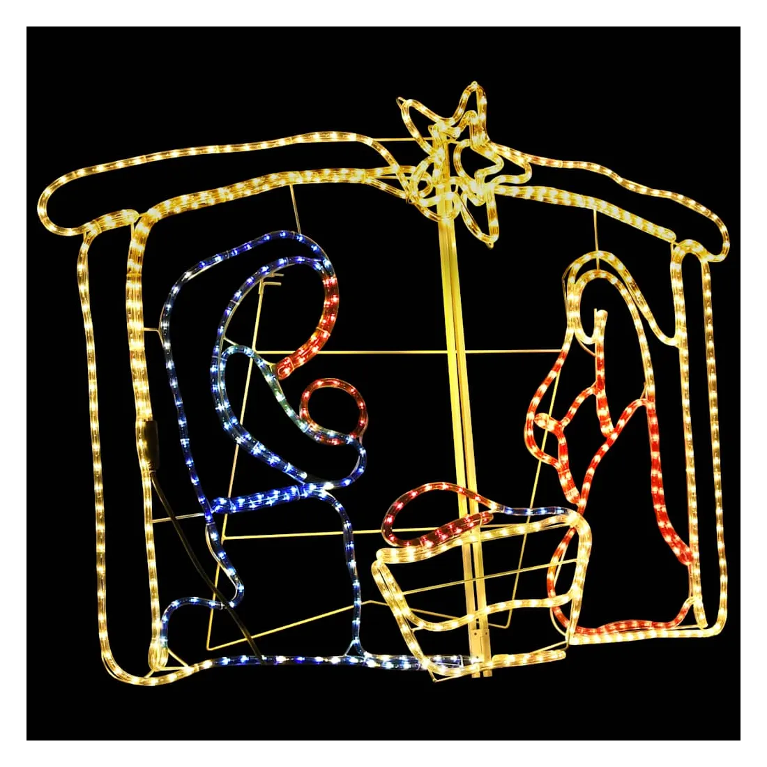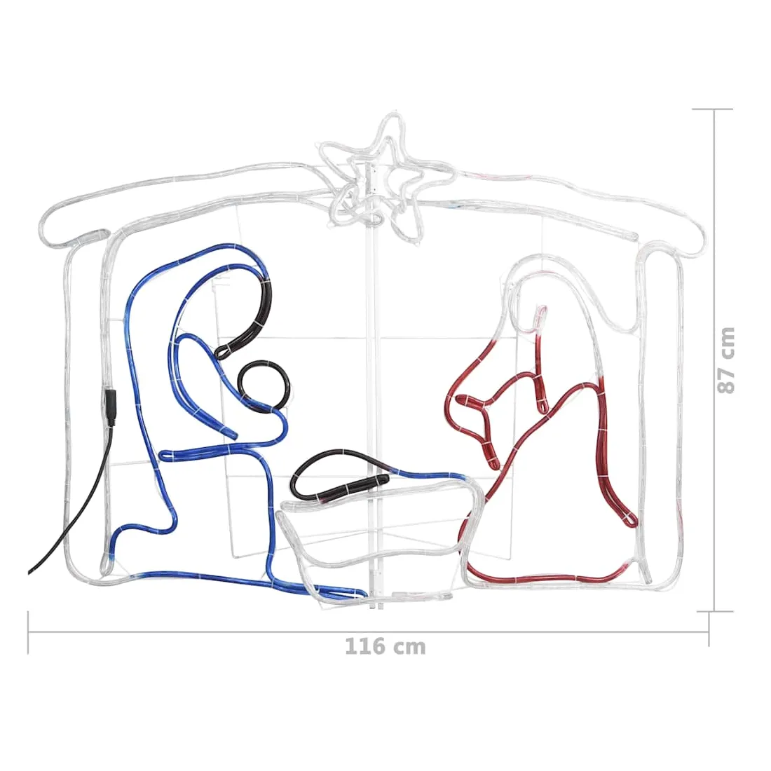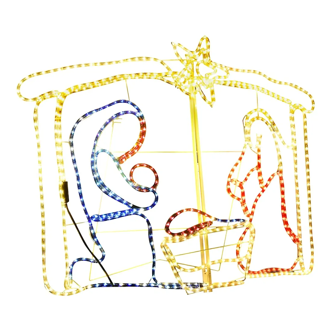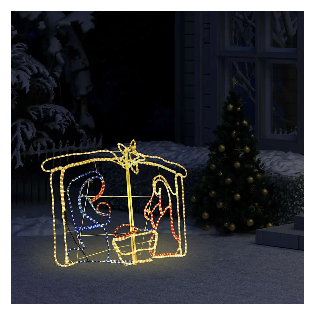 vidaXLDécorez votre jardin ou votre maison avec cette collection unique. La décoration de crèche de Noël jumelée à des lumières multicolores fait ressortir la vraie beauté de la saison ! Fabriquée en PVC autour d’un cadre métallique, cette décoration lumineuse résiste parfaitement aux intempéries pendant la période des fêtes. Elle est pré-éclairée avec 240 lumières LED, qui sont économes en énergie et durables. Dotée de l'indice IP 44, cette belle décoration de Noël est résistante à l’eau et convient donc aussi bien à l'intérieur qu'à l'extérieur. Remarque : une fiche est incluse dans la livraison. Pour plus de sécurité, n'utilisez le câble d'éclairage qu'en combinaison avec le RCD (Residual Current Device) (non inclus).