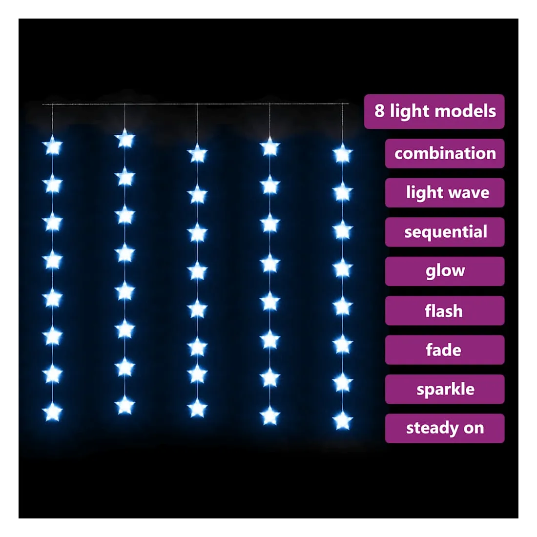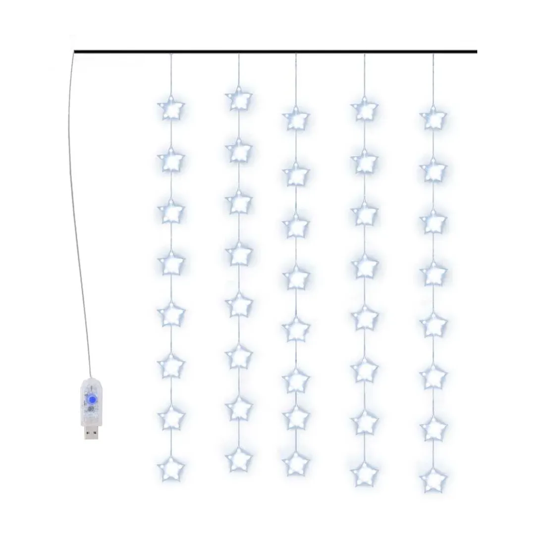 Ce rideau lumineux à LED à étoiles est excellent pour une utilisation comme un complément d’éclairage à tout projet décoratif. Il est adapté pour Noël, fêtes, mariages et autres jours fériés. La guirlande lumineuse est équipée de 200 LED à économie d’énergie, créant une performance d’éclairage magique. Elle dispose de 8 effets lumineux différents : mode combiné, vagues, mode séquentiel, mode de lueur lente, clignotement, mode d'atténuation lente, scintillement et éclairage continu. C’est un excellent accessoire décoratif pour éclairer les espaces intérieurs et extérieurs. Remarque: l'USB inclus n'est pas étanche, donc cette partie doit éviter l'eau, mais grâce au câble de 3 m, la décoration de Noël peut être utilisée à l’extérieur car le câble et le produit sont étanches. Ce produit est doté d'un connecteur USB, mais la source d'alimentation certifiée de USB 5V n'est pas incluse.