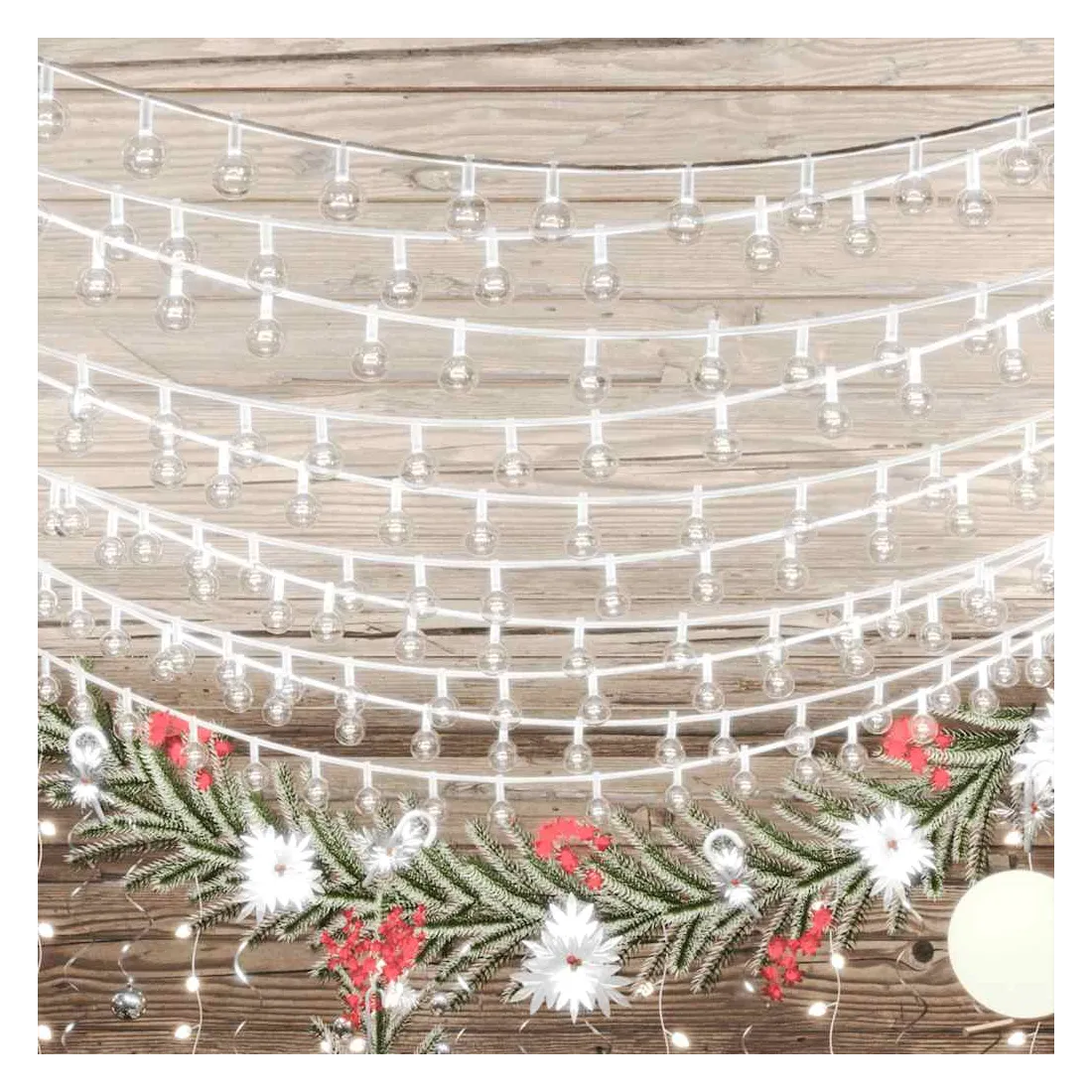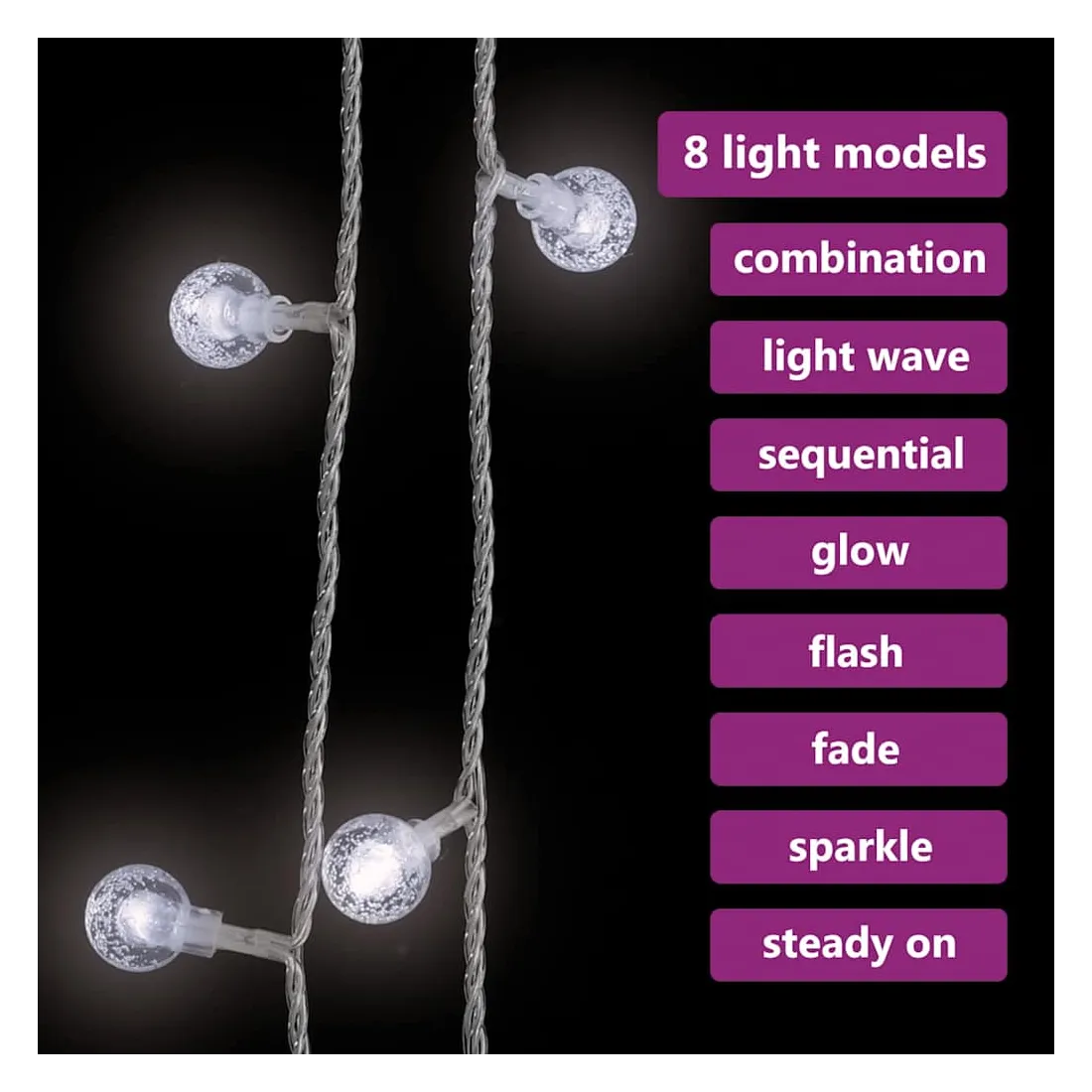 Cette lampe solaire féerique est parfaite pour une utilisation comme un complément d’éclairage à tout projet décoratif. Elle est adaptée pour Noël, fêtes, mariages et autres jours fériés. La guirlande lumineuse féerique est équipée de 200 LED à économie d’énergie, créant une performance d’éclairage magique. Elle dispose de 8 effets lumineux différents : mode combiné, vagues, mode séquentiel, mode de lueur lente, clignotement, mode d'atténuation lente, scintillement et éclairage continu. C’est un excellent accessoire décoratif pour éclairer les espaces intérieurs et extérieurs. Remarque: l'USB inclus n'est pas étanche, donc cette partie doit éviter l'eau, mais grâce au câble de 3 m, la décoration de Noël peut être utilisée à l’extérieur car le câble et le produit sont étanches. Ce produit est doté d'un connecteur USB, mais la source d'alimentation certifiée de USB 5V n'est pas incluse.