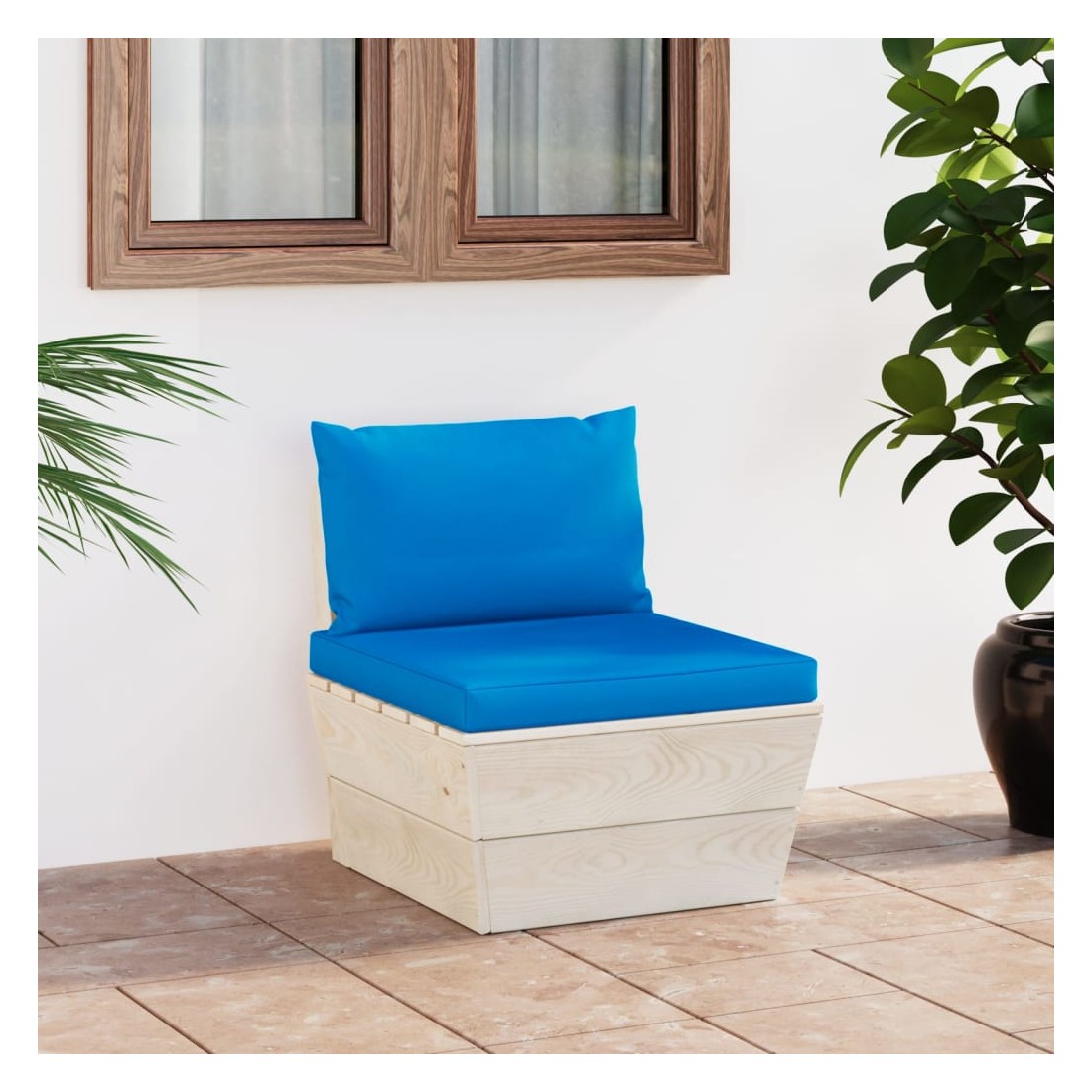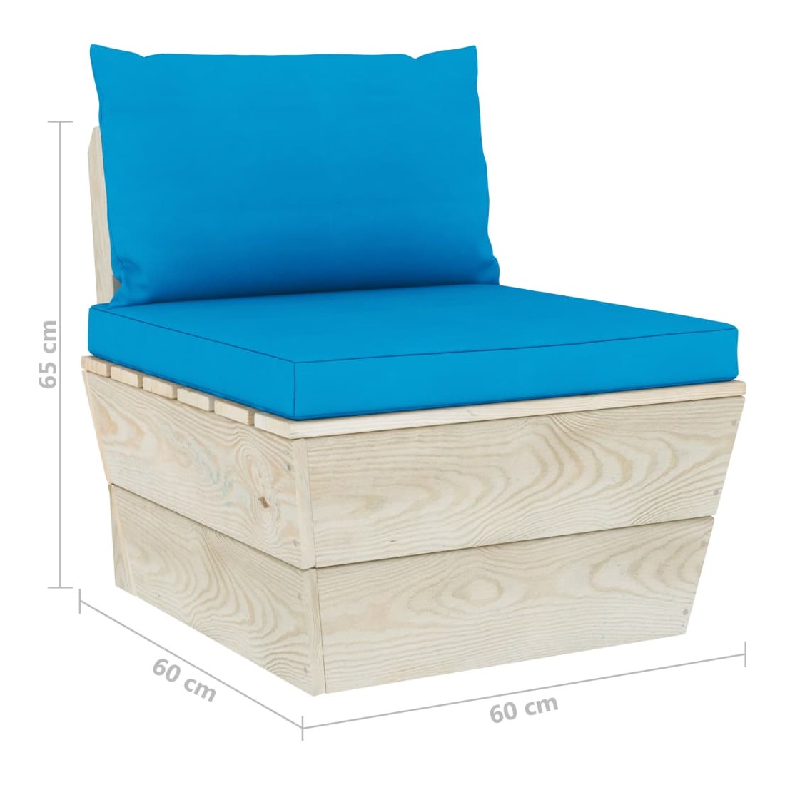 Canapé central palette de jardin avec coussins Épicéa imprégné