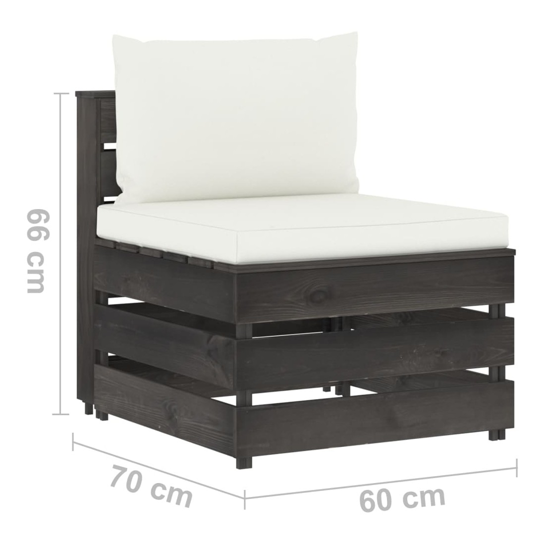 Ce canapé de milieu en bois est un choix idéal pour vous détendre, profiter du beau temps, faire une sieste ou discuter en famille ou entre amis. Avec son design intemporel de palette, ce canapé en bois ajoute une touche de charme rustique à votre terrasse, jardin ou salon. Le siège central est fabriqué en bois de pin imprégné, ce qui le rend durable et résistant aux intempéries. Ce fauteuil central a une construction solide et nécessite peu d’entretien. Ce canapé palette est spécialement conçu pour faire partie d'un ensemble de salon et peut également être utilisé comme un canapé simple. Vous pouvez le combiner avec d’autres segments modulaires comme table basse, repose-pied et canapé d’angle pour créer vos propres configurations de salon de jardin ! Remarque : afin de prolonger la durée de vie des meubles d'extérieur, nous vous recommandons de les protéger avec une housse imperméable.