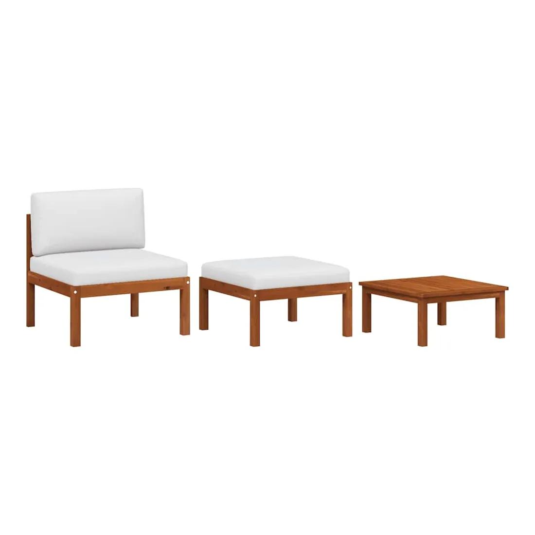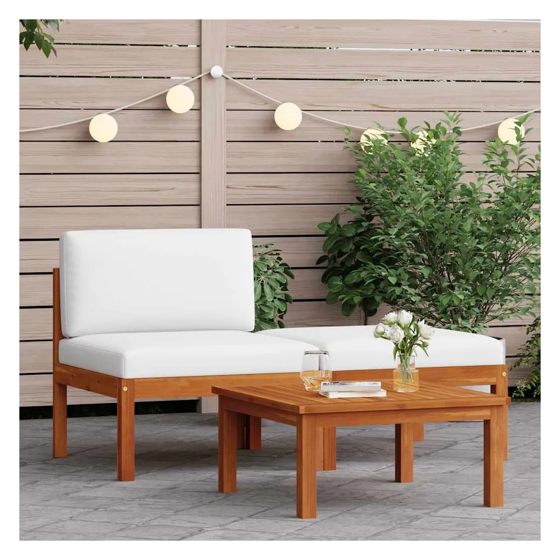 Salon de jardin 3 pièces avec coussins en bois d'acacia et corde