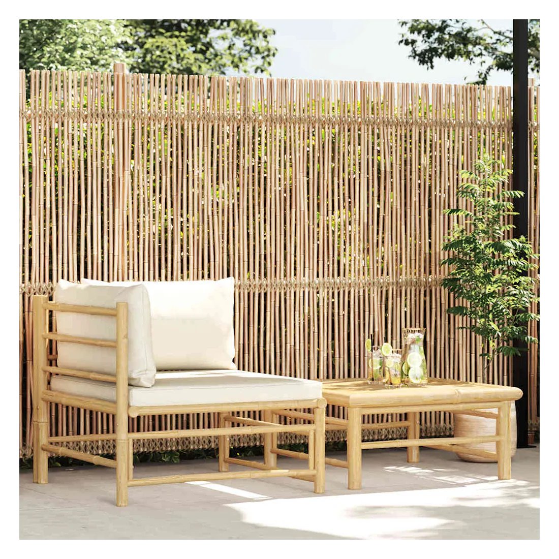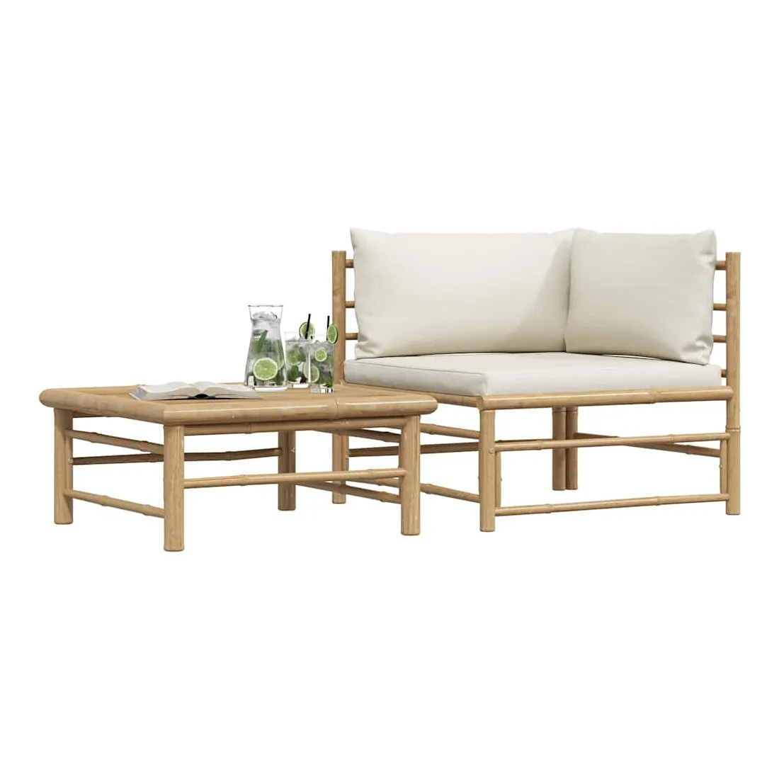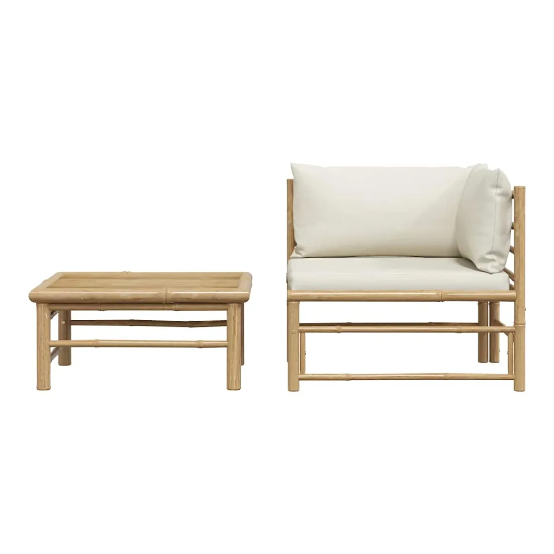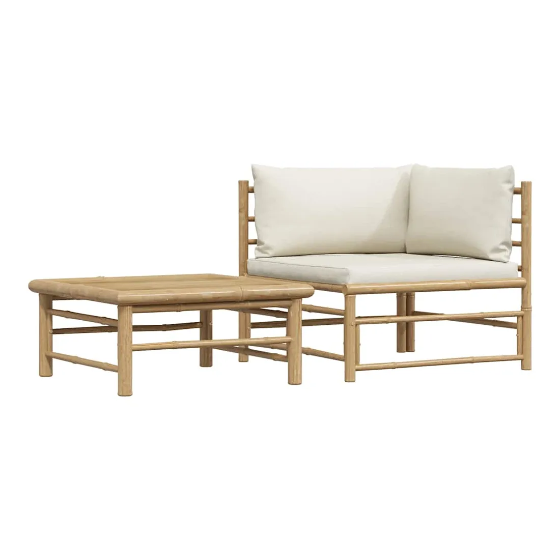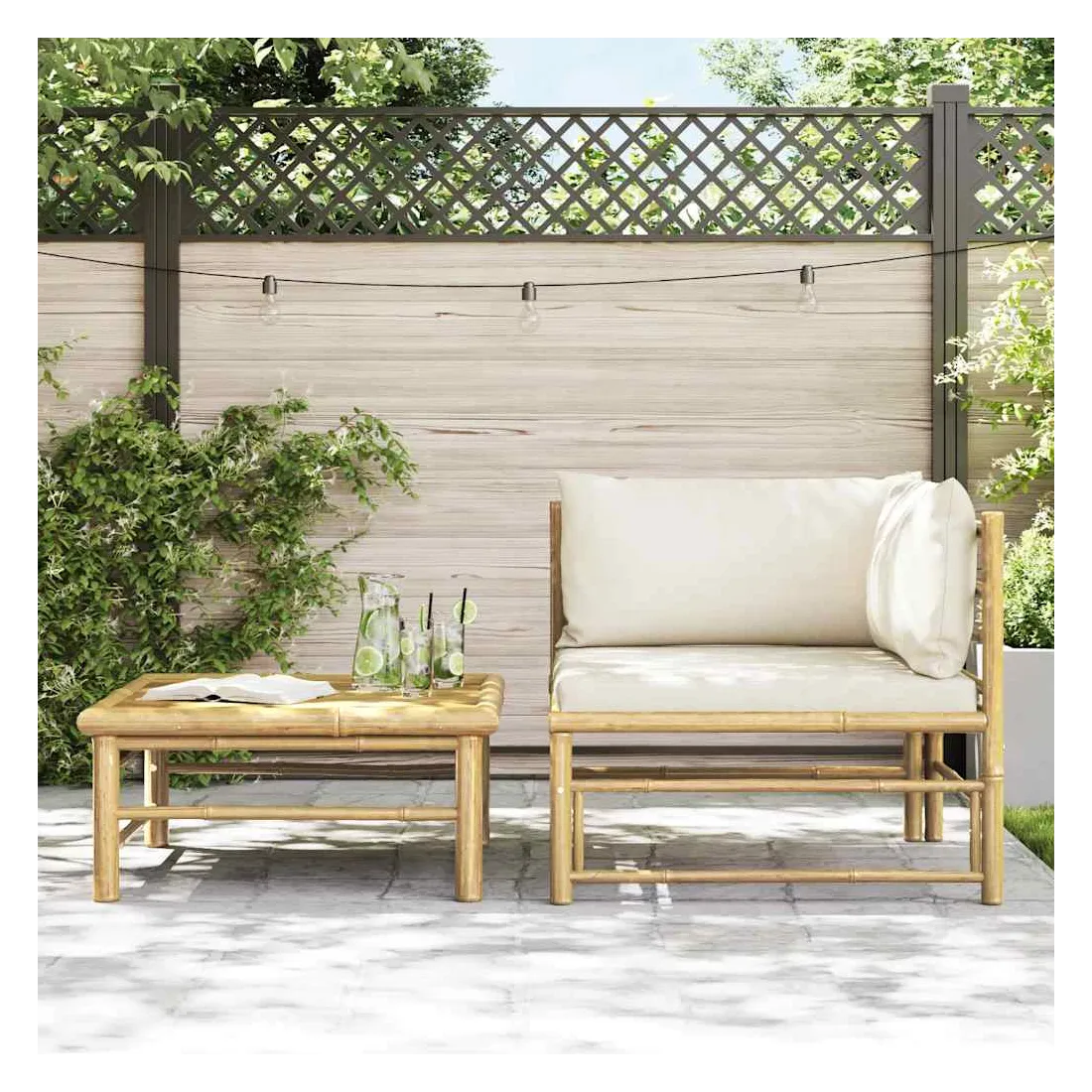Salon de jardin 2 pcs avec coussins blanc crème Bambou