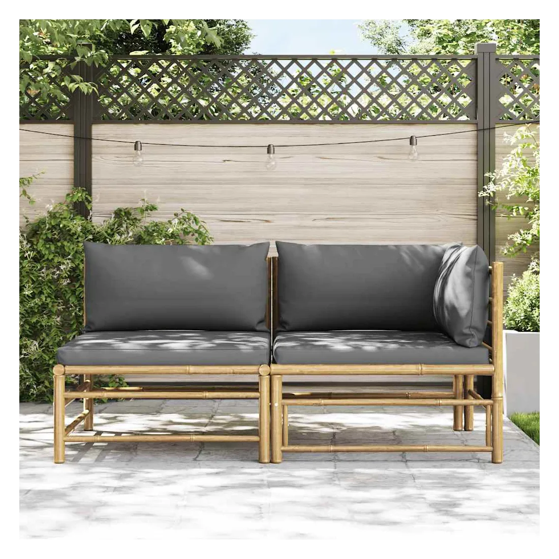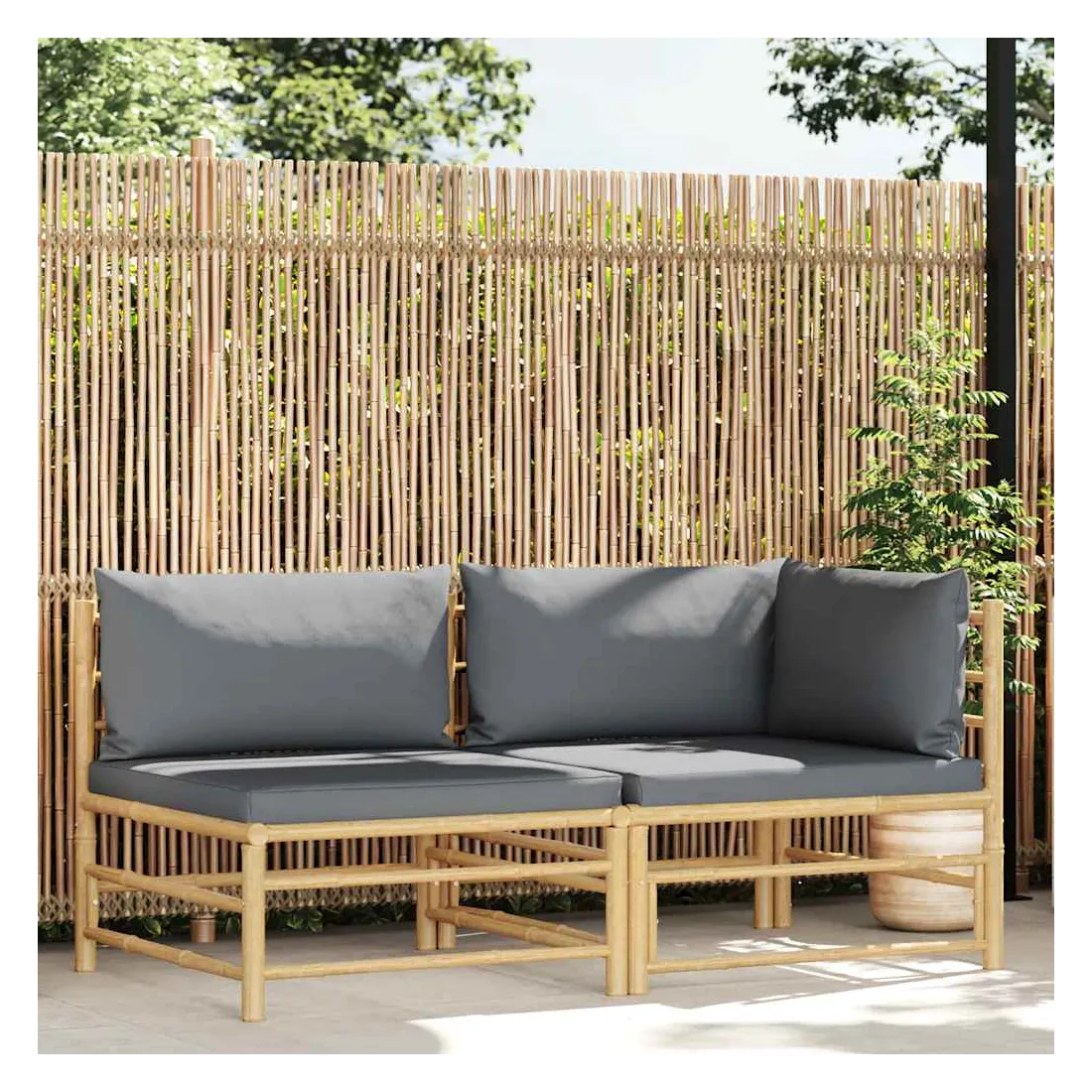 Créez un coin salon relaxant avec cet élégant salon de jardin. Cet ensemble de meubles d'extérieur est fabriqué en bambou, ce qui le rend robuste et facile à nettoyer. Les coussins de siège et de dossier bien rembourrés ajoutent du confort supplémentaire à votre temps de détente. Avec une construction légère, l’ensemble de meubles est facile à déplacer. Vous pouvez placer l’ensemble dans n’importe quel arrangement selon votre préférence, grâce à la conception modulaire. Remarque : Afin de prolonger la durée de vie de vos meubles d'extérieur, nous vous recommandons de les nettoyer régulièrement et de ne pas les laisser à l'extérieur sans protection inutilement.Nettoyage : Utiliser une solution savonneuse douceStockage : Si possible, stockez dans un endroit frais et sec à l'intérieur. Si le produit est stocké à l'extérieur, protégez-le avec une housse imperméable. Essuyez et séchez l'excès d'eau ou de neige des surfaces planes après la pluie ou une chute de neige. Permettez une circulation d'air suffisante afin d'éviter les dommages liés à l'humidité.