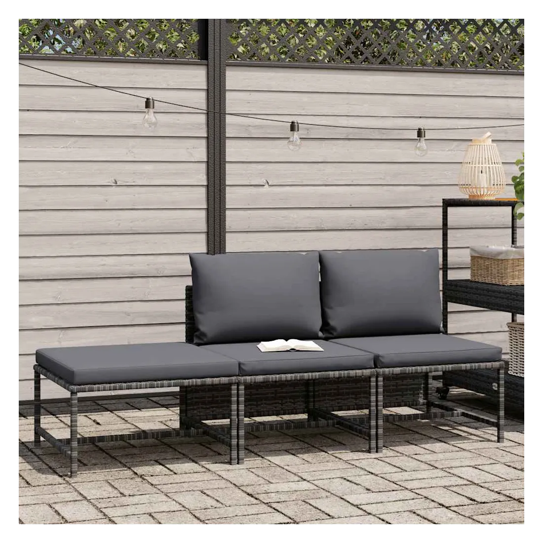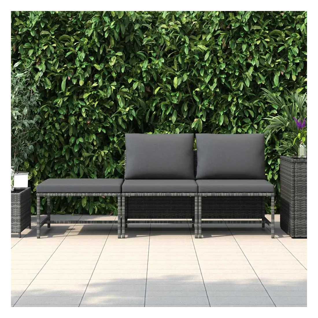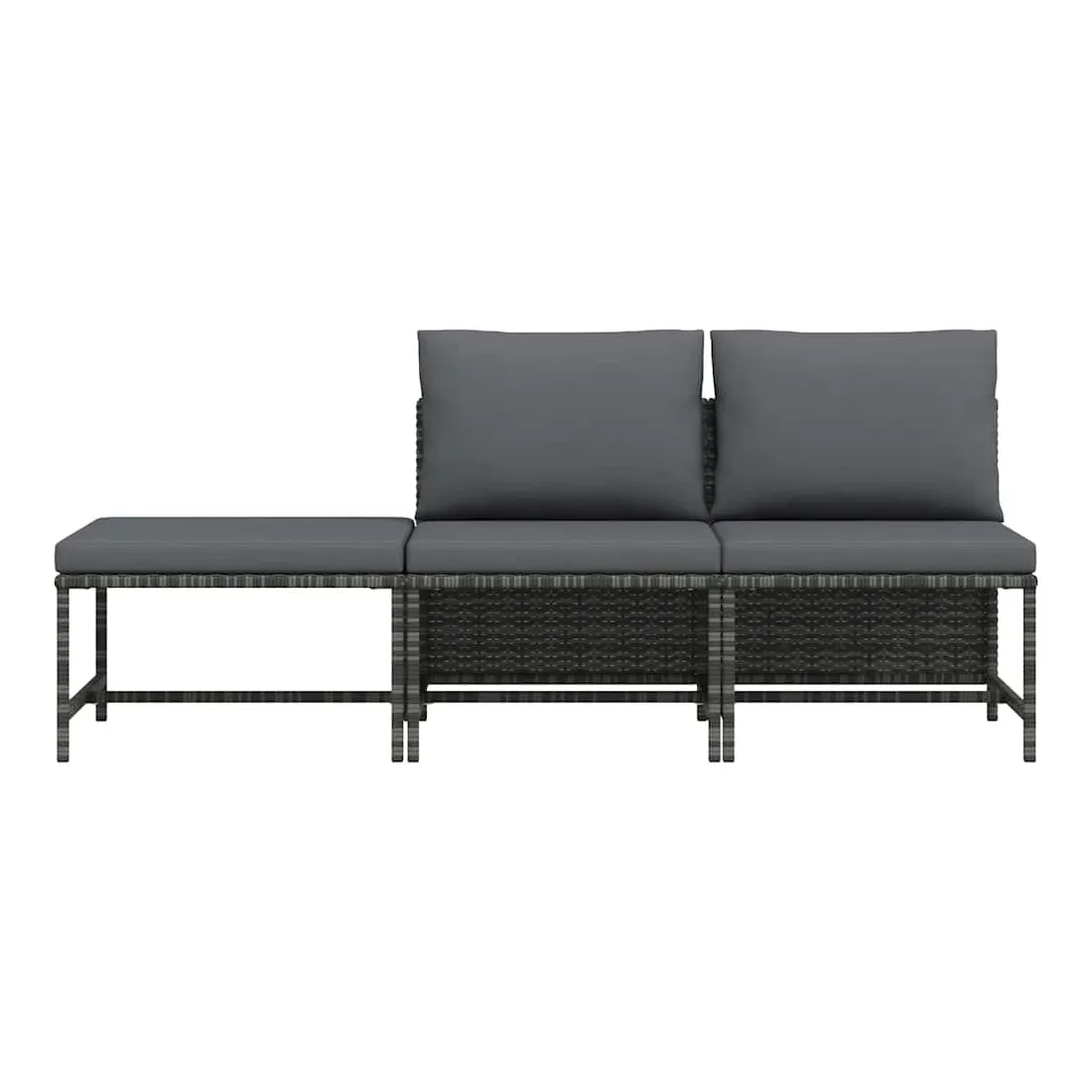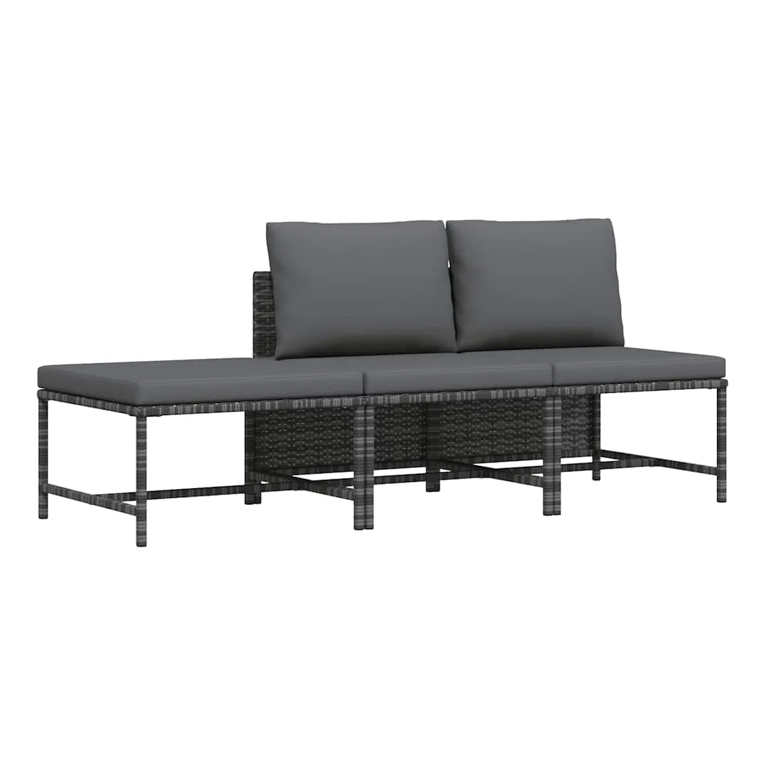 Salon de jardin 3 pcs avec coussins Gris Résine tressée