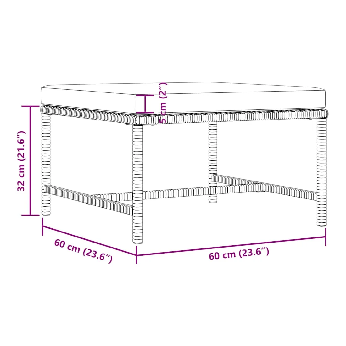 • Dimensions du repose-pied : 60 x 60 x 32 cm (l x P x H)
