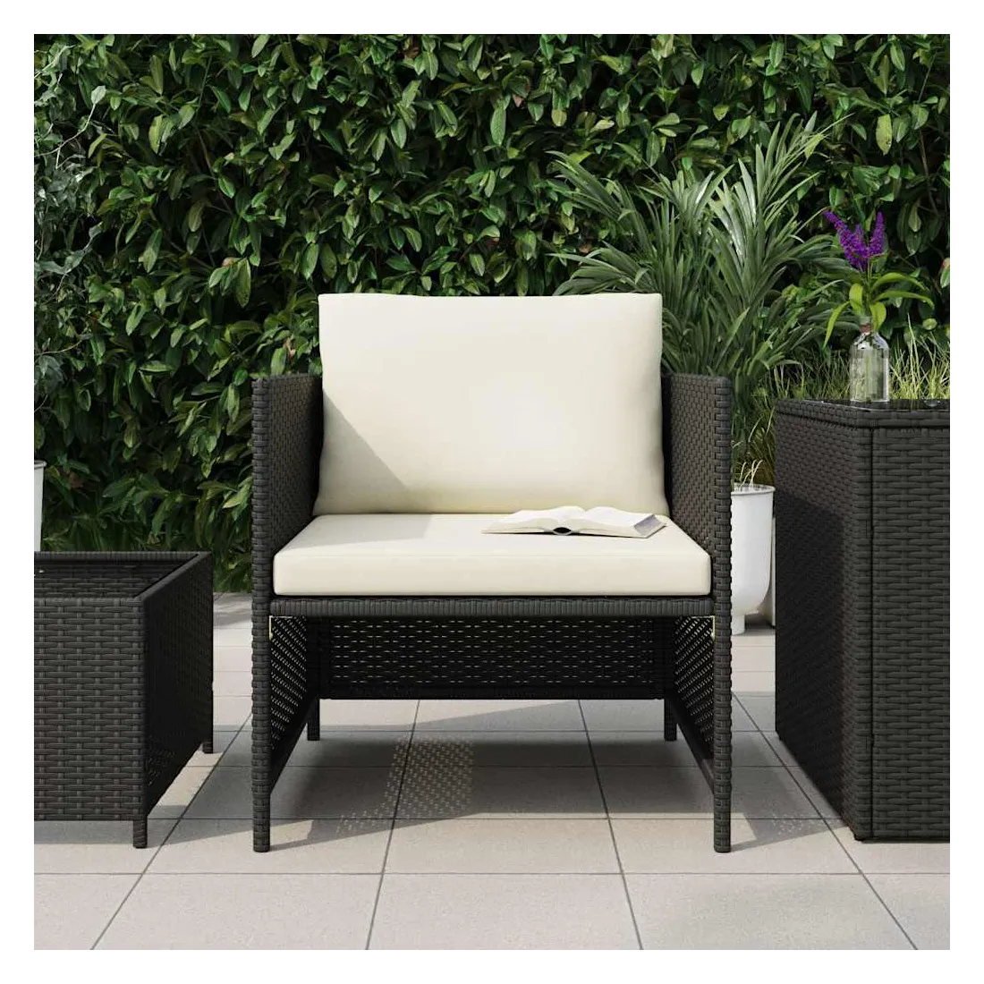 Ce canapé de jardin allie style et fonctionnalité et est conçu pour être utilisé à l’extérieur toute l’année. Grâce à la résine tressée résistante aux intempéries, le canapé d'extérieur est léger, résistant à l'usure et adapté à une utilisation quotidienne. Le siège de jardin est doté d’un cadre robuste en acier enduit de poudre, qui est très durable. Ce fauteuil est spécialement conçu pour servir comme une partie de l’ensemble de salon et il peut également être utilisé comme un canapé simple. Vous pouvez le combiner avec d’autres segments modulaires comme table basse, canapé d'angle et canapé central pour créer vos propres configurations de salon de jardin ! Les coussins rembourrés et amovibles sont très confortables. Remarque : Afin de prolonger la durée de vie de vos meubles d'extérieur, nous vous recommandons de les nettoyer régulièrement et de ne pas les laisser à l'extérieur sans protection inutilement.Nettoyage : Utiliser une solution savonneuse douce.Stockage : Si possible, stockez dans un endroit frais et sec à l'intérieur. Si le produit est stocké à l'extérieur, protégez-le avec une housse imperméable. Essuyez et séchez l'excès d'eau ou de neige des surfaces planes après la pluie ou une chute de neige. Permettez une circulation d'air suffisante afin d'éviter les dommages liés à l'humidité.
