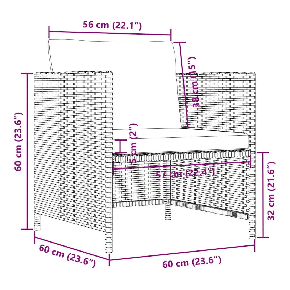 • Dimensions du canapé : 60 x 60 x 60 cm (l x P x H)