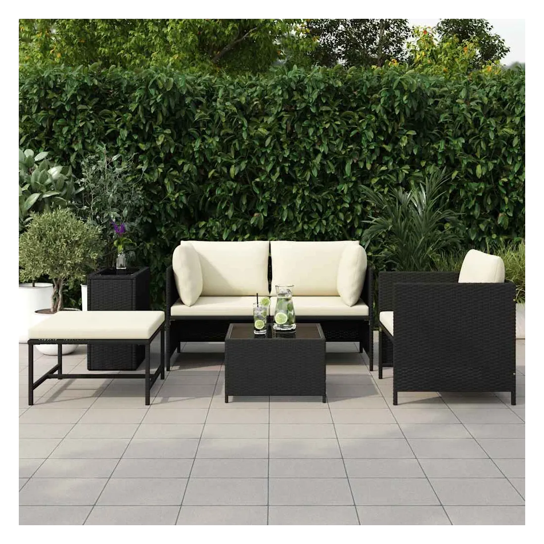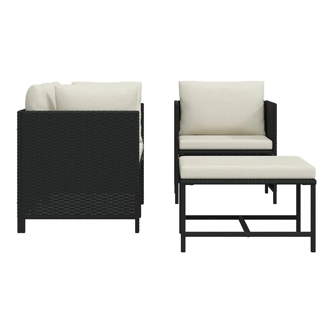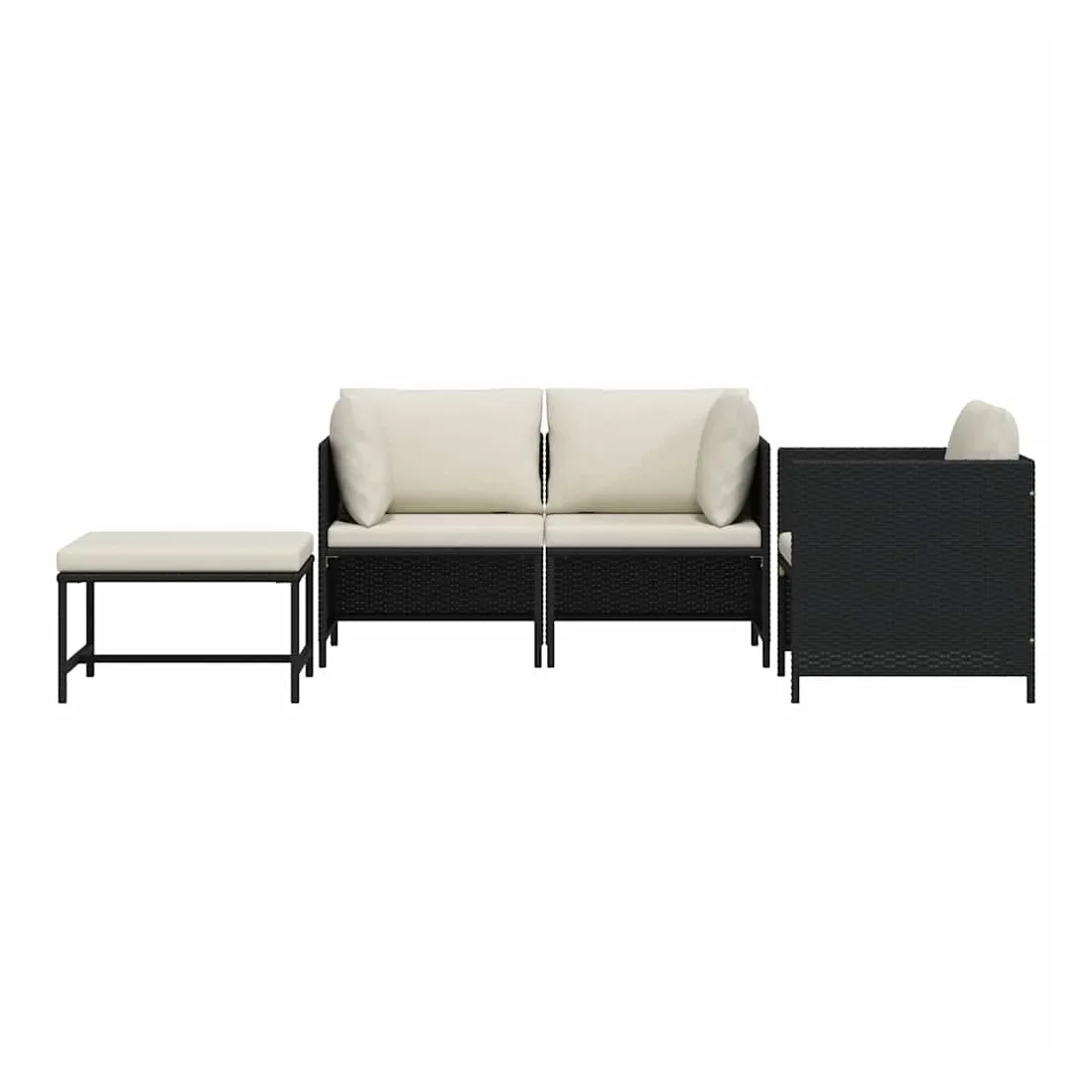 Canapés de jardin 4 pcs avec coussins Noir Résine tressée
