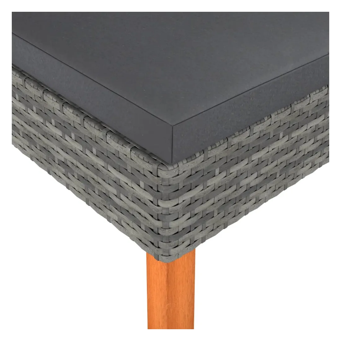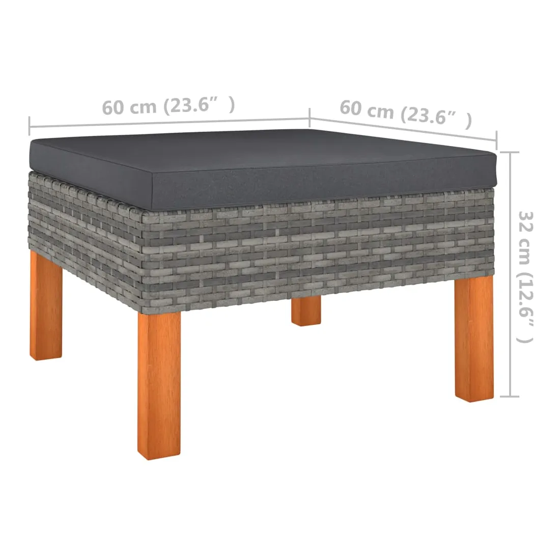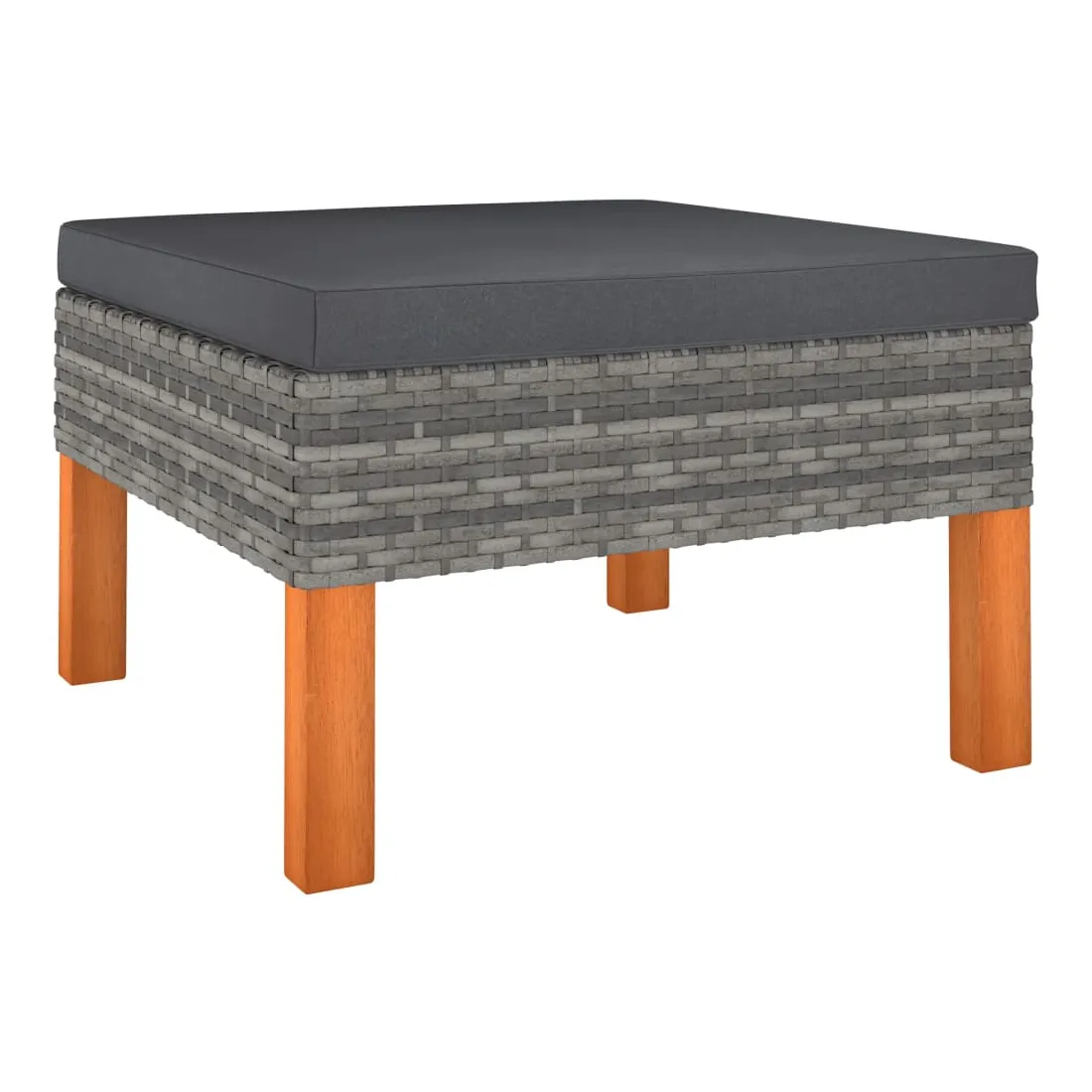Ce repose-pied est un choix idéal pour vous détendre et profiter du beau temps, faire une sieste ou discuter avec votre famille ou vos amis. Doté d’un cadre en acier enduit de poudre recouvert de résine tressée, ce repose-pied de jardin est robuste et facile à nettoyer. Les pieds en bois d’eucalyptus massif contribuent à sa robustesse et à sa stabilité. De plus, le coussin ajoute du confort supplémentaire à votre temps de détente. Équipé de fermetures éclair, la housse de coussin est amovible et lavable. Grâce à la construction légère en résine tressée, vous pouvez le déplacer facilement. Vous pouvez le combiner avec d’autres segments modulaires disponibles dans le menu déroulant pour créer vos propres configurations de salon de jardin ! Remarque importante : Nous vous recommandons de couvrir le repose-pied pendant la pluie, la neige et le gel pour une utilisation durable.