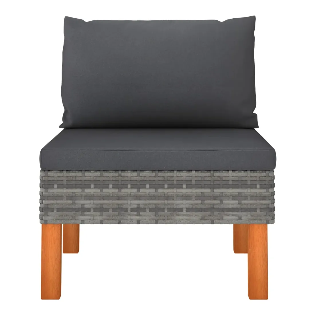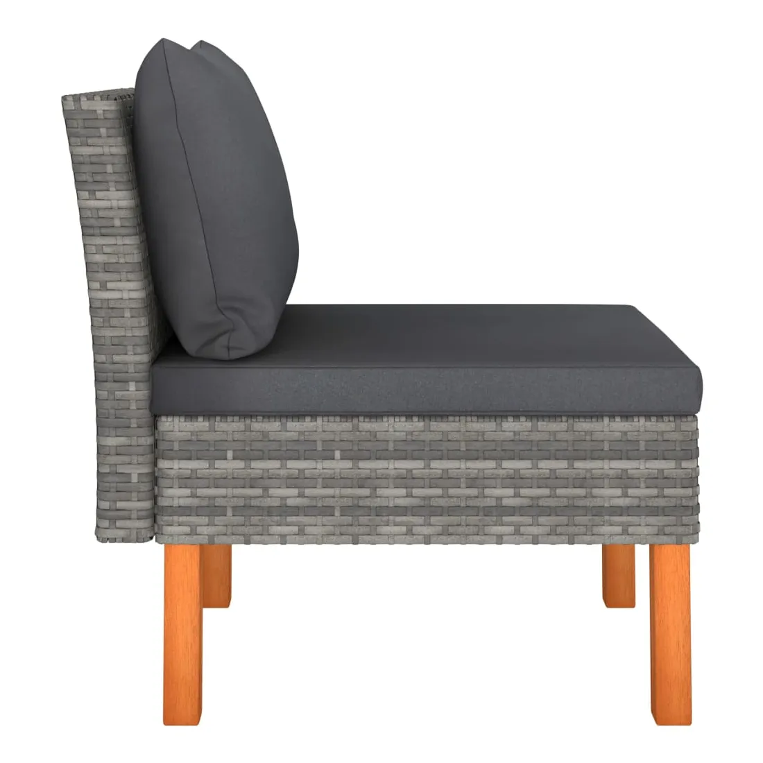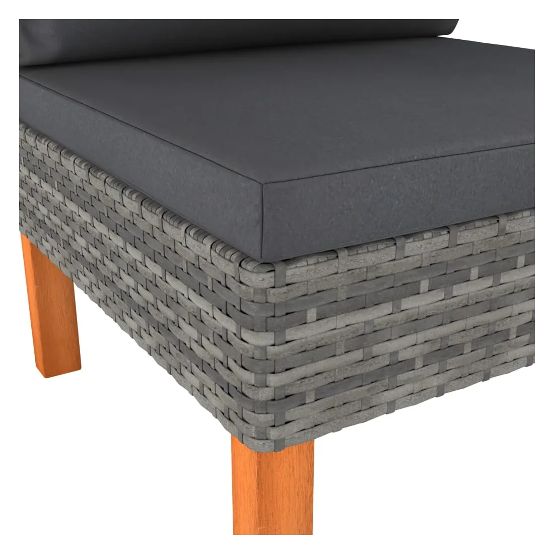 Ce canapé central est un choix idéal pour vous détendre et profiter du beau temps, faire une sieste ou discuter avec votre famille ou vos amis. Doté d’un cadre en acier enduit de poudre recouvert de résine tressée, ce siège central est robuste et facile à nettoyer. Les pieds en bois d’eucalyptus massif contribuent à sa robustesse et à sa stabilité. De plus, les coussins ajoutent du confort supplémentaire à votre temps de détente. Équipé de fermetures éclair, les housses de coussin sont amovibles et lavables. Il est également léger et modulaire, ce qui le rend complètement flexible et facile à déplacer pour convenir à toute configuration. Vous pouvez le combiner avec d’autres segments modulaires disponibles dans le menu déroulant pour créer vos propres configurations de salon de jardin ! Remarque importante : Nous vous recommandons de couvrir le canapé de jardin pendant la pluie, la neige et le gel pour une utilisation durable.