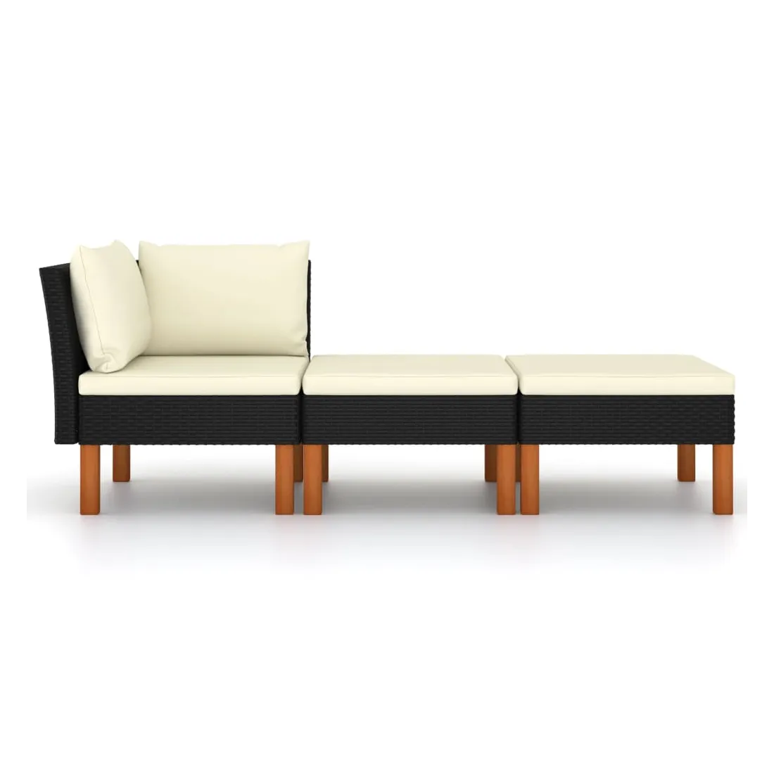 Cet ensemble de salon de jardin est un choix excellent pour vous détendre et profiter du bon temps, faire une sieste ou discuter avec votre famille ou vos amis. Doté d’un cadre en acier enduit de poudre recouvert de résine tressée, cet ensemble de canapé de jardin est robuste et facile à nettoyer. Les pieds en bois d’eucalyptus massif contribuent à leur robustesse et à leur stabilité. De plus, les coussins ajoutent un confort supplémentaire à votre temps de détente. Équipées de fermetures éclair, les housses de coussin sont amovibles et lavables. Grâce à la construction légère, vous pouvez déplacer facilement le salon de jardin. Remarque : Afin de prolonger la durée de vie de vos meubles d'extérieur, nous vous recommandons de les nettoyer régulièrement et de ne pas les laisser à l'extérieur sans protection inutilement.Nettoyage : Utiliser une solution savonneuse douce.Stockage : Si possible, stockez dans un endroit frais et sec à l'intérieur. Si le produit est stocké à l'extérieur, protégez-le avec une housse imperméable. Essuyez et séchez l'excès d'eau ou de neige des surfaces planes après la pluie ou une chute de neige. Permettez une circulation d'air suffisante afin d'éviter les dommages liés à l'humidité.