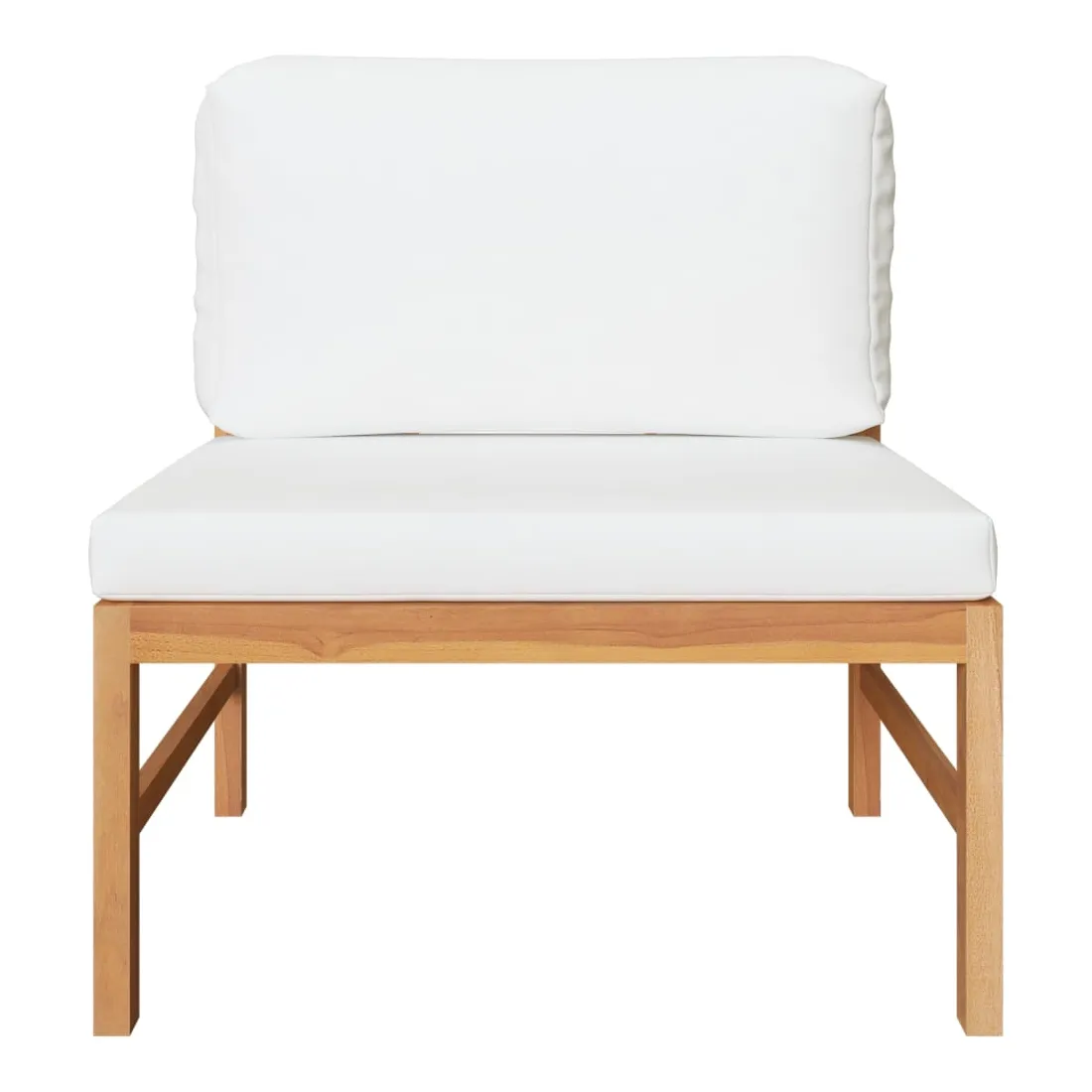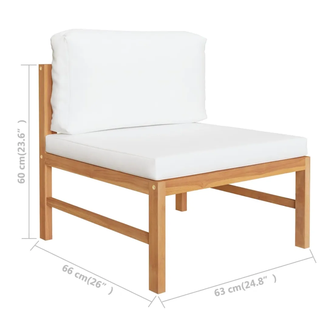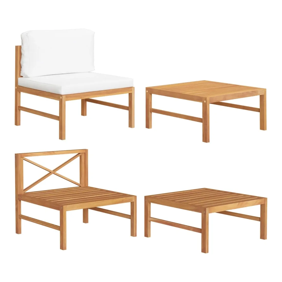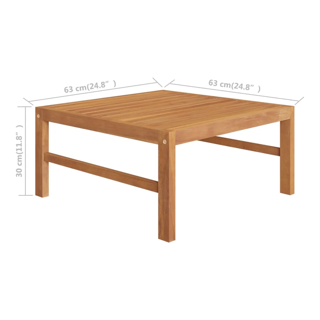 Cet ensemble de salon de jardin en bois, se démarquant par son design et ses coussins moelleux, est un excellent supplément à votre jardin, terrasse ou patio pour discuter avec votre famille et vos amis ou simplement profiter du beau temps. Construit à partir de bois dur de teck extrêmement durable, cet ensemble de meubles en teck a été chevronné, séché au four puis poncé finement pour lui donner un aspect très lisse. Le bois de teck est connu pour sa résistance exceptionnelle et sa résistance aux intempéries, ce qui le rend bien plus adapté aux meubles de jardin que tout autre type de bois. Le bois de teck est le choix parfait si vous souhaitez acheter un meuble de jardin durable. La surface poncée est facile à nettoyer avec un chiffon humide. Les coussins d'assise et de dossier bien rembourrés ajoutent un confort maximal. La table est idéale pour placer des boissons et de la nourriture. Remarque : afin de prolonger la durée de vie de vos meubles d'extérieur, nous vous recommandons de les nettoyer régulièrement et de ne pas les laisser à l'extérieur sans protection inutilement.Nettoyage : utiliser une solution savonneuse douceStockage : si possible, stockez dans un endroit frais et sec à l'intérieur. Si le produit est stocké à l'extérieur, protégez-le avec une housse imperméable. Essuyez et séchez l'excès d'eau ou de neige des surfaces planes après la pluie ou une chute de neige. Permettez une circulation d'air suffisante afin d'éviter les dommages liés à l'humidité.