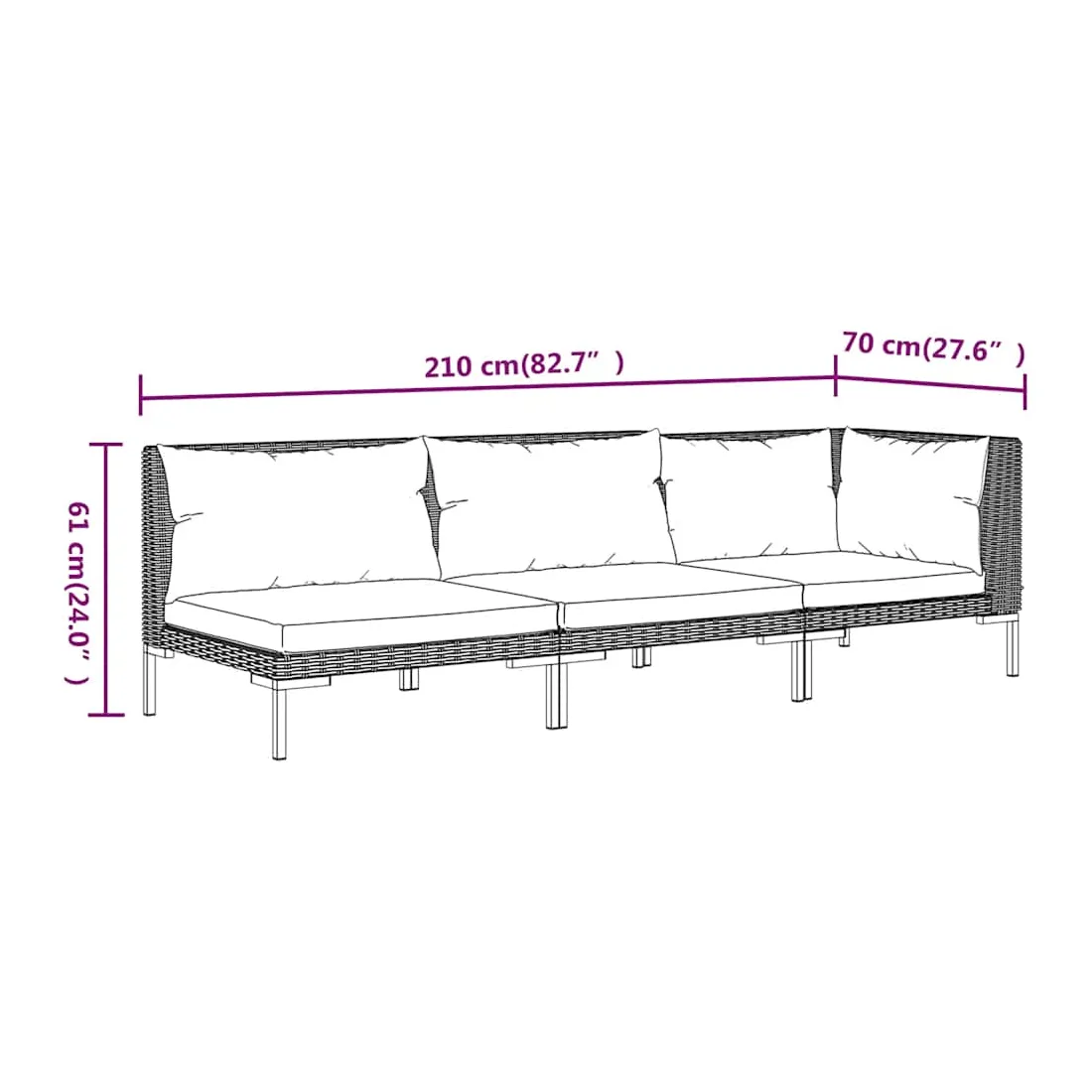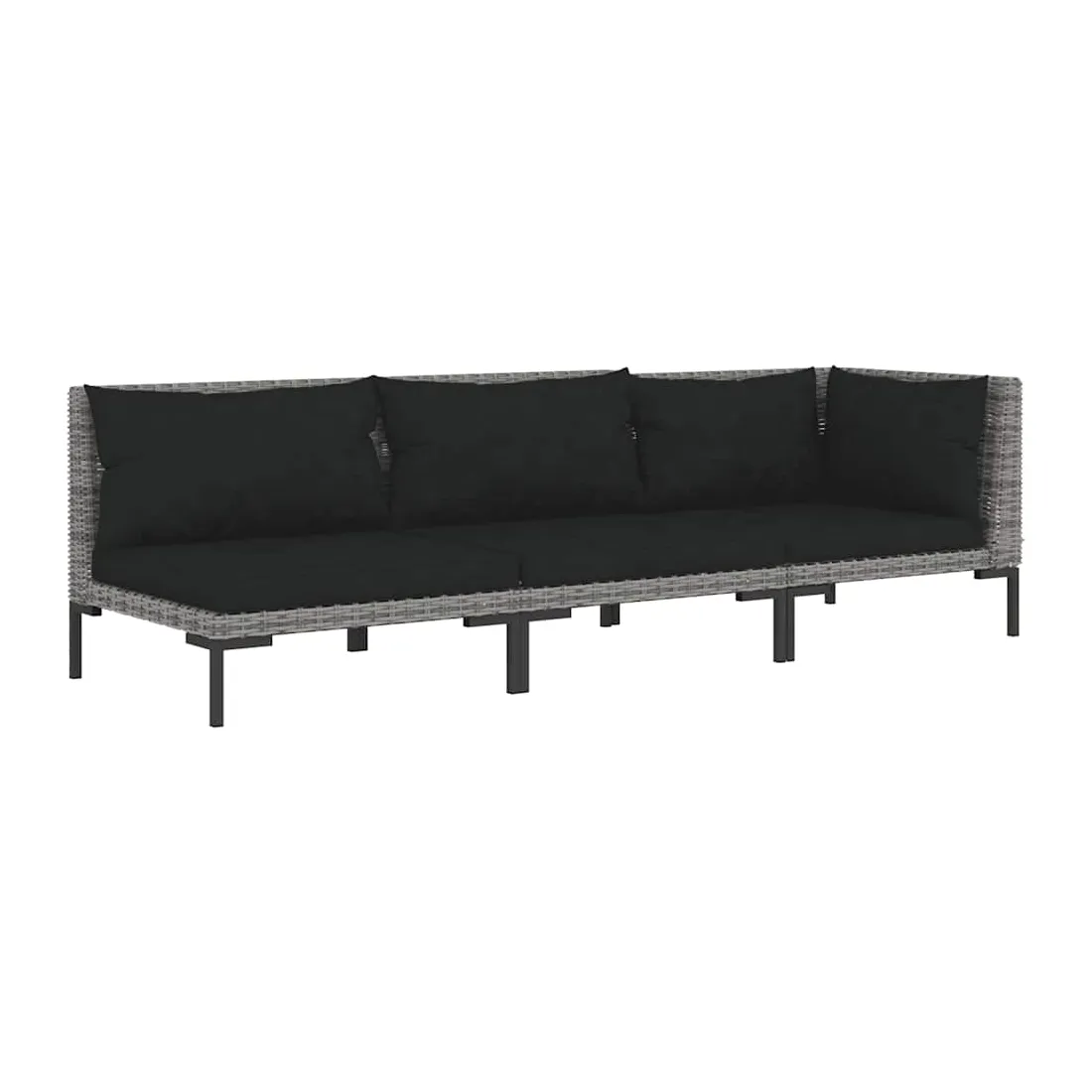 Salon de jardin 3 pcs Gris foncé Résine tressée demi-ronde