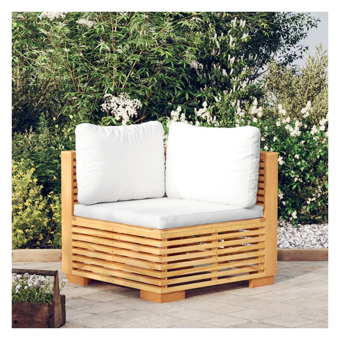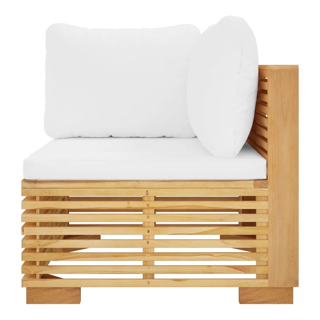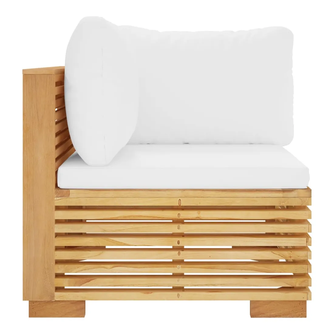 Ce canapé d'angle en bois, qui se distingue par son design à lattes et ses coussins moelleux, sera un atout pour votre jardin, terrasse ou patio pour discuter avec votre famille et vos amis ou simplement pour profiter du beau temps. Bois de teck massif : le bois de teck massif est un matériau naturel magnifique. Il a été chevronné, séché au four, puis sablé finement pour lui donner une apparence très lisse. Le bois de teck est connu pour sa résistance exceptionnelle et sa résistance aux intempéries.Coussin souple : les coussins d'assise et de dossier bien rembourrés de ce canapé de jardin en bois apportent le plus grand confort.Design pratique : le canapé est facile à déplacer, ce qui vous permet de créer facilement différents agencements adaptés à vos besoins. Vous pouvez trouver d'autres canapés sectionnels avec le même design et le même style dans notre boutique pour arranger vos propres modèles de salon. Remarque :Chaque produit est livré avec un manuel de montage dans la boîte pour un montage facile.Afin de prolonger la durée de vie de votre mobilier d'extérieur, nous vous recommandons de le protéger avec une housse imperméable.