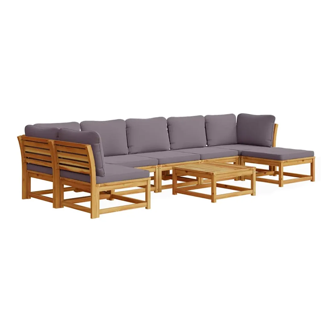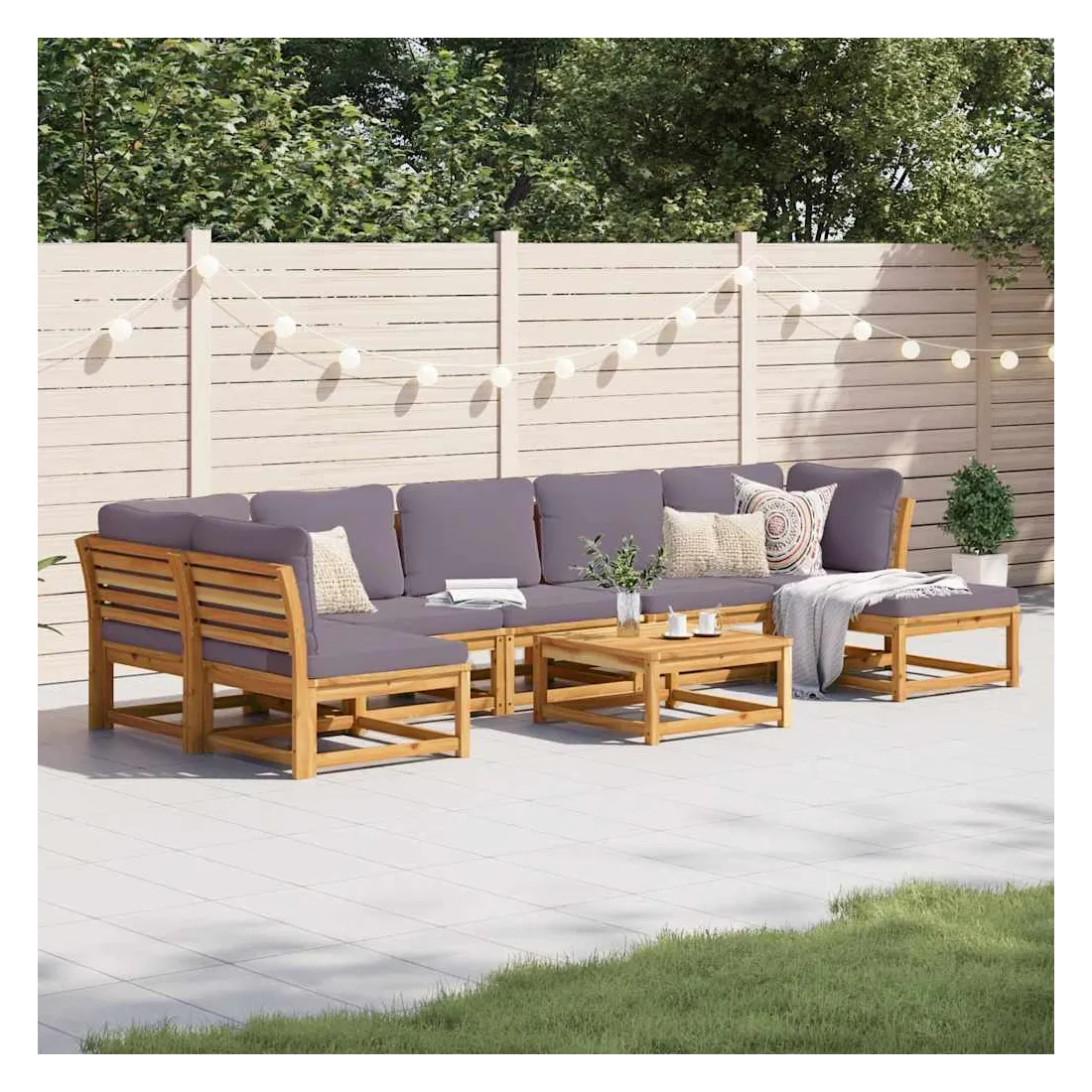 Cet ensemble de salon de jardin en bois avec coussins a un design élégant et constitue un excellent choix pour vous détendre et profiter du jardin ou du patio. Bois d'acacia massif : le bois d'acacia massif est un matériau naturel magnifique. Le bois d'acacia un bois dur tropical, qui est dense, robuste et durable.Expérience d'assise confortable : le dossier et les coussins rembourrés rendent l’ensemble de canapé de jardin plus confortable pour s'asseoir.Conception à lattes : la conception à lattes de l’ensemble de meubles en bois empêche efficacement l'eau de s'accumuler, ce qui garantit que l'assise reste sèche et exempte de tout risque de pourriture.Conception modulaire : cet ensemble de meubles d'extérieur a une conception modulaire, ce qui le rend complètement flexible et facile à déplacer, afin que vous puissiez créer un agencement de meubles d'extérieur personnalisé. Bon à savoir :Pour que vos meubles d'extérieur restent beaux, nous vous recommandons de les protéger avec une housse imperméable.