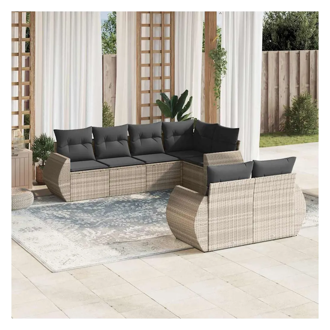 Cet ensemble de canapés de jardin est le complément parfait de votre arrière-cour, terrasse ou patio, offrant un espace confortable et accueillant pour discuter avec la famille et les amis ou simplement se détendre et profiter de l'extérieur. Matériau durable : la résine tressée, également connue sous le nom de poly rotin, est un matériau synthétique solide et nécessitant peu d'entretien qui ressemble au rotin naturel. Il est léger, facile à nettoyer et couramment utilisé pour les meubles d'extérieur en raison de sa durabilité et de ses propriétés de résistance aux intempéries.Expérience d'assise confortable : ce mobilier d'extérieur, doté de coussins épais, offre une expérience d'assise confortable.Housse amovible et lavable : ces coussins de siège sont dotés de housses amovibles pour un lavage et un entretien faciles.Conception modulaire : cet ensemble de meubles d'extérieur a une conception modulaire, ce qui le rend complètement flexible et facile à déplacer, afin que vous puissiez créer un agencement de meubles d'extérieur personnalisé. Bon à savoir :Pour que vos meubles d'extérieur restent beaux, nous vous recommandons de les protéger avec une housse imperméable.