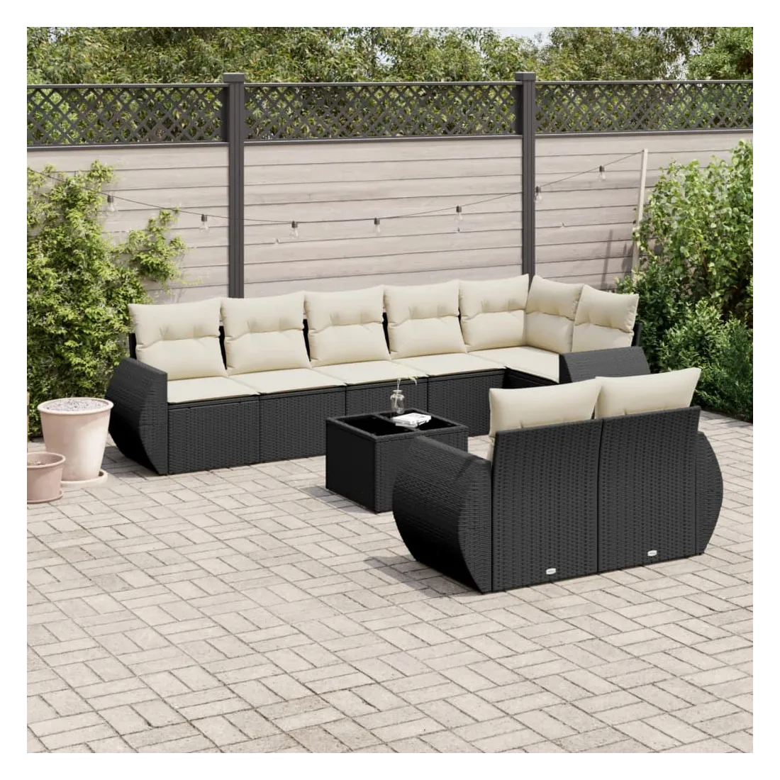Cet ensemble de canapés de jardin est le complément parfait de votre arrière-cour, terrasse ou patio, offrant un espace confortable et accueillant pour discuter avec la famille et les amis ou simplement se détendre et profiter de l'extérieur. Matériau durable : la résine tressée, également connue sous le nom de poly rotin, est un matériau synthétique solide et nécessitant peu d'entretien qui ressemble au rotin naturel. Il est léger, facile à nettoyer et couramment utilisé pour les meubles d'extérieur en raison de sa durabilité et de ses propriétés de résistance aux intempéries.Dessus en verre : le dessus de la table d'extérieur est fabriqué en verre trempé solide et durable, ce qui le rend facile à nettoyer avec un chiffon humide et ajoute une touche d'élégance à votre espace extérieur.Expérience d'assise confortable : ce mobilier d'extérieur, doté de coussins épais, offre une expérience d'assise confortable.Housse amovible et lavable : ces coussins de siège sont dotés de housses amovibles pour un lavage et un entretien faciles.Conception modulaire : cet ensemble de meubles d'extérieur a une conception modulaire, ce qui le rend complètement flexible et facile à déplacer, afin que vous puissiez créer un agencement de meubles d'extérieur personnalisé. Bon à savoir :Pour que vos meubles d'extérieur restent beaux, nous vous recommandons de les protéger avec une housse imperméable.