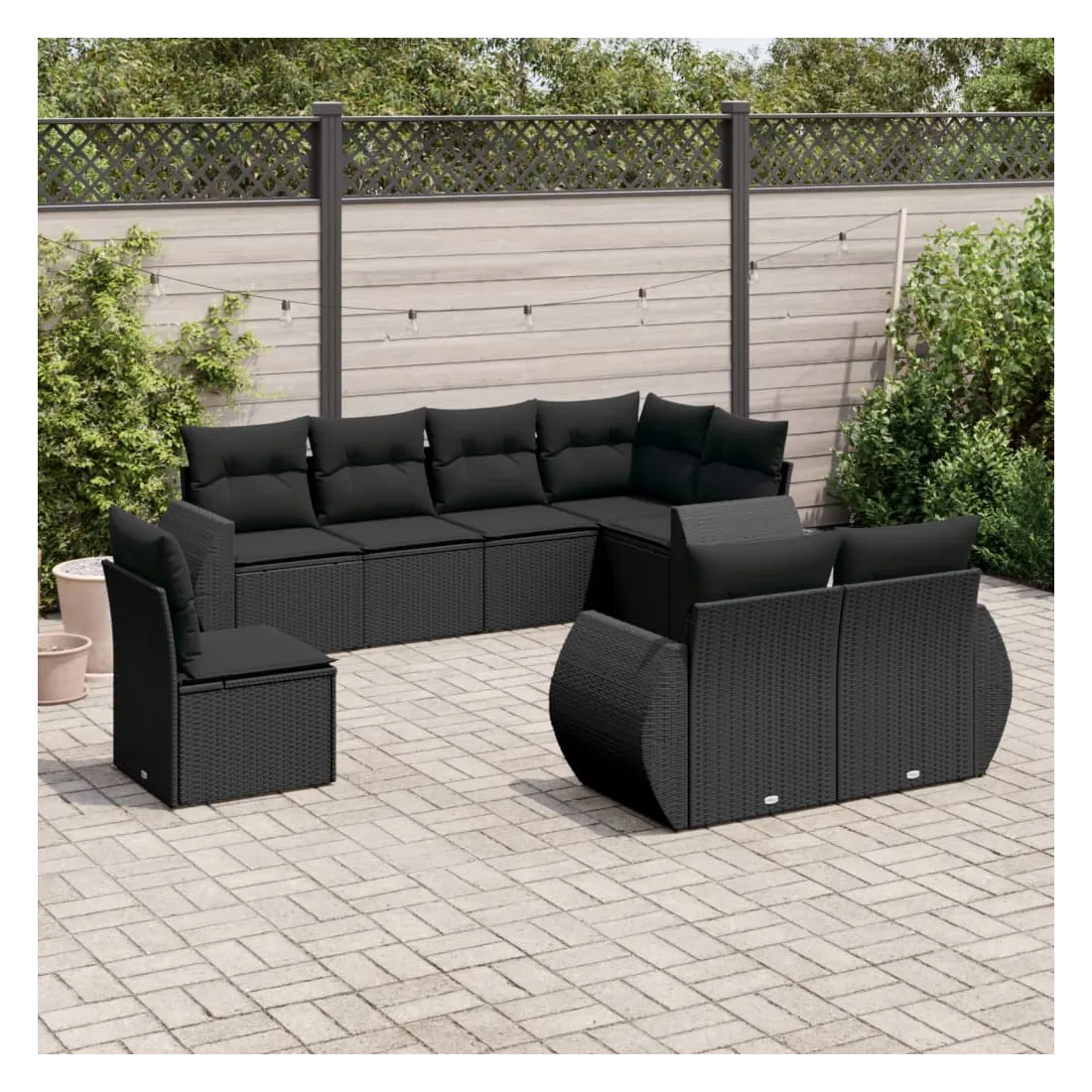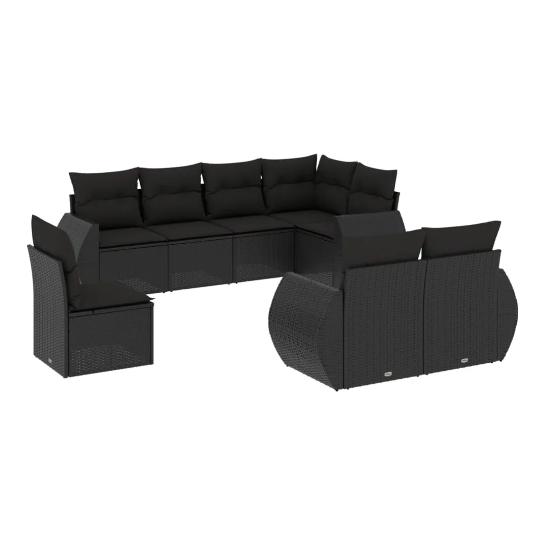 Salon de jardin 8 pcs avec coussins noir résine tressée