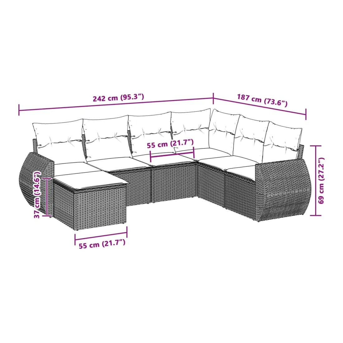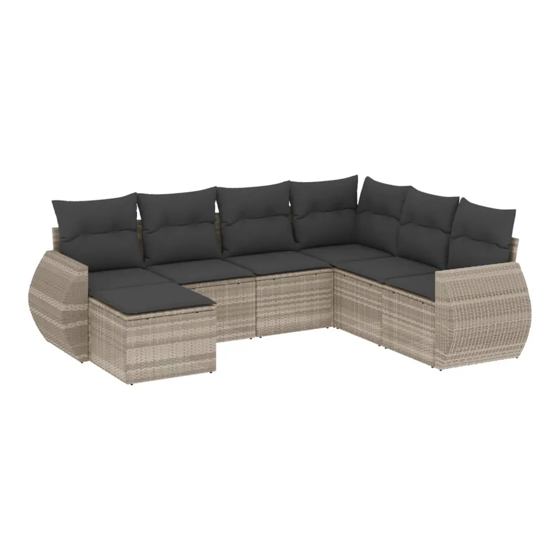 Salon de jardin avec coussins 7 pcs gris clair résine tressée