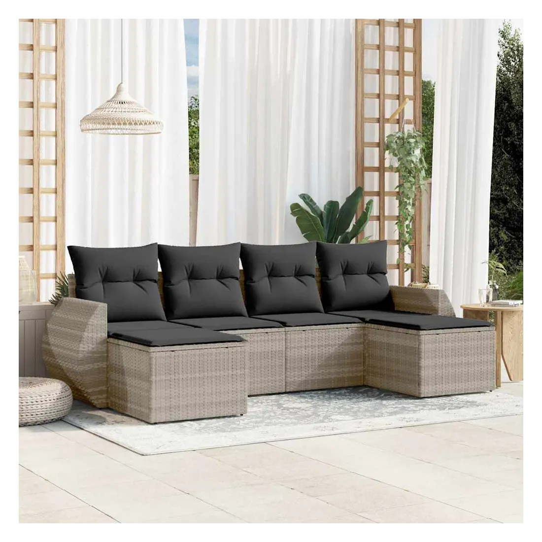 Cet ensemble de canapés de jardin est le complément parfait de votre arrière-cour, terrasse ou patio, offrant un espace confortable et accueillant pour discuter avec la famille et les amis ou simplement se détendre et profiter de l'extérieur. Matériau durable : la résine tressée, également connue sous le nom de poly rotin, est un matériau synthétique solide et nécessitant peu d'entretien qui ressemble au rotin naturel. Il est léger, facile à nettoyer et couramment utilisé pour les meubles d'extérieur en raison de sa durabilité et de ses propriétés de résistance aux intempéries.Expérience d'assise confortable : ce mobilier d'extérieur, doté de coussins épais, offre une expérience d'assise confortable.Housse amovible et lavable : ces coussins de siège sont dotés de housses amovibles pour un lavage et un entretien faciles.Conception modulaire : cet ensemble de meubles d'extérieur a une conception modulaire, ce qui le rend complètement flexible et facile à déplacer, afin que vous puissiez créer un agencement de meubles d'extérieur personnalisé. Bon à savoir :Pour que vos meubles d'extérieur restent beaux, nous vous recommandons de les protéger avec une housse imperméable.