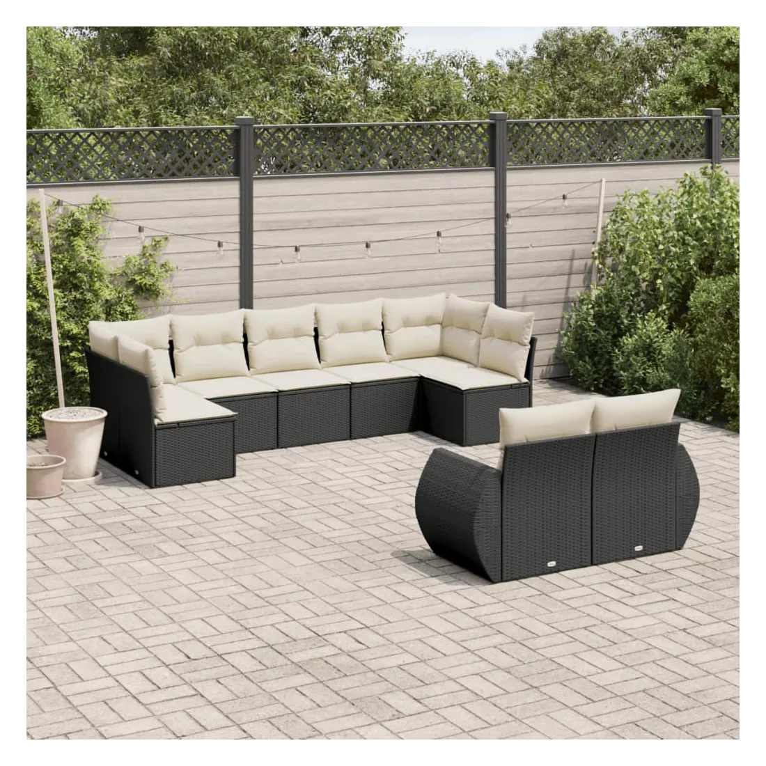 Salon de jardin 9 pcs avec coussins noir résine tressée