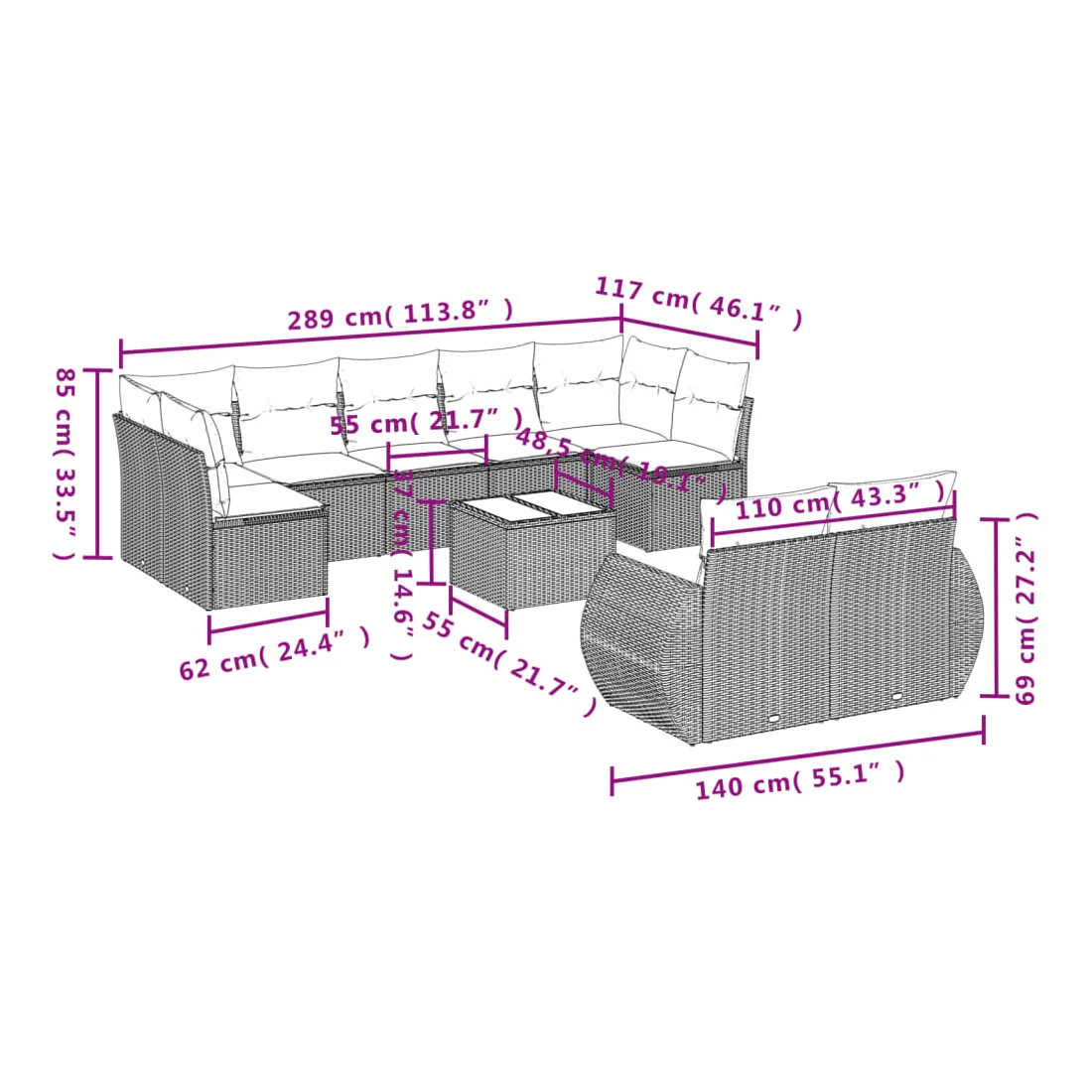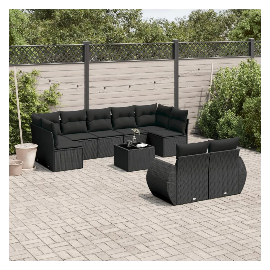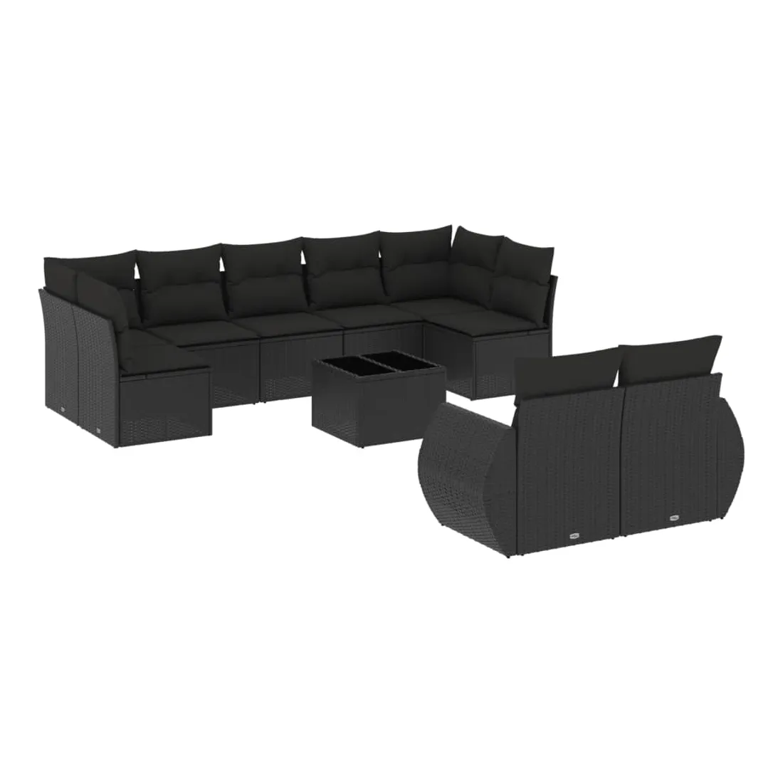 Salon de jardin 10 pcs avec coussins noir résine tressée