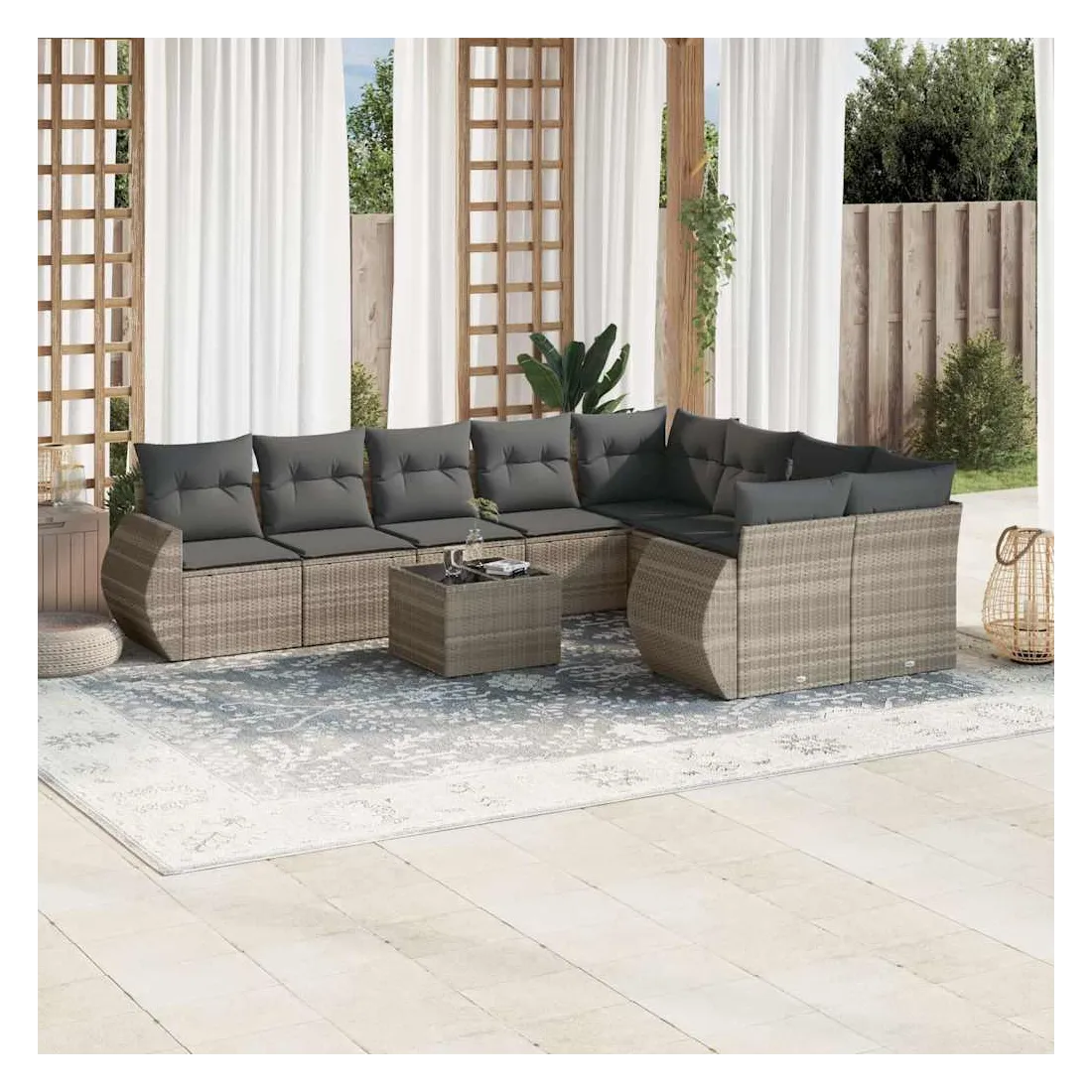 Salon de jardin avec coussins 10 pcs gris clair résine tressée