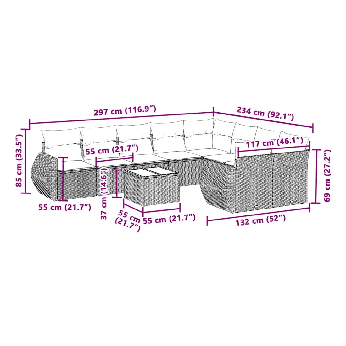 • 9 x coussin d'assise avec housse amovible et lavable