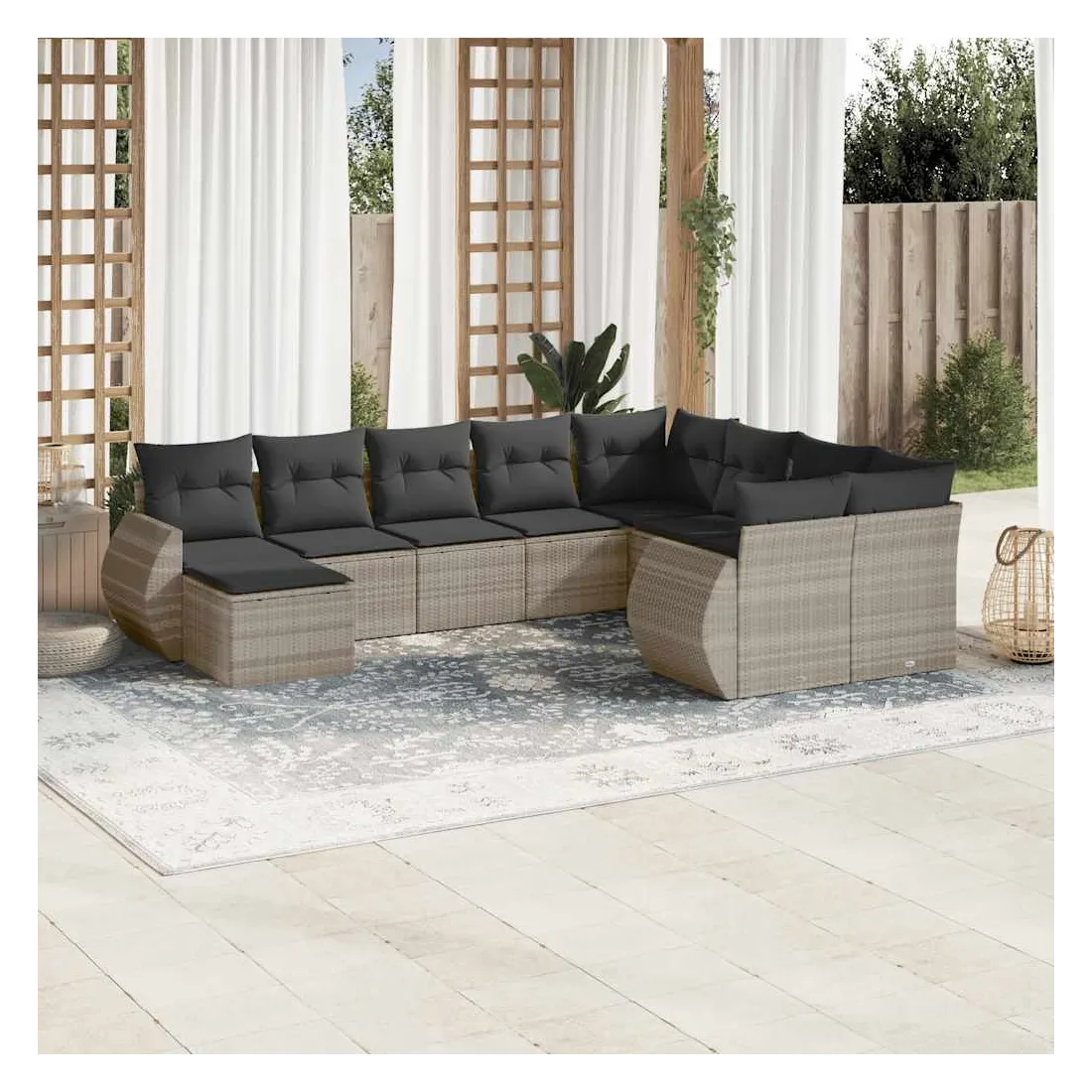 Salon de jardin avec coussins 10 pcs gris clair résine tressée