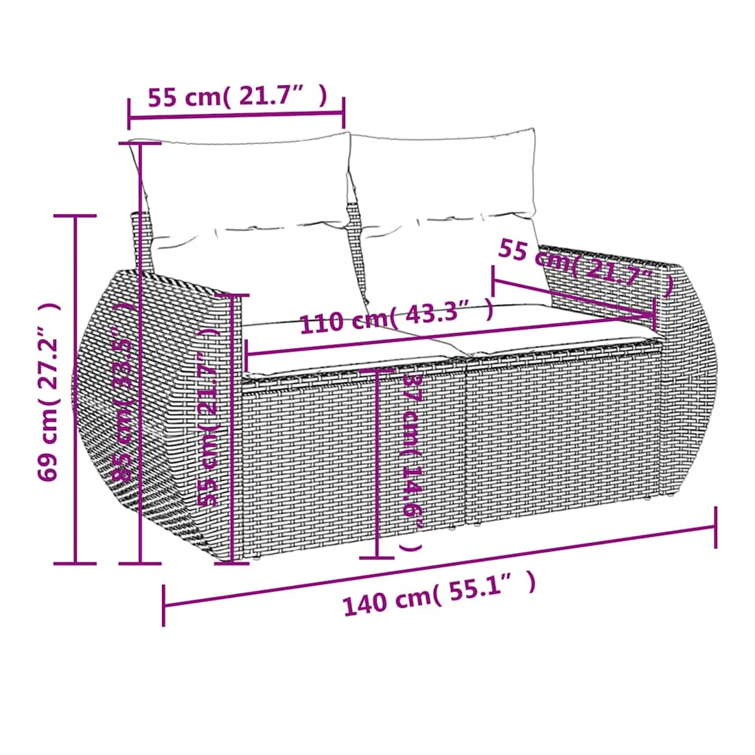 • Dimensions du coussin de dossier : 55 x 45 x 13 cm (L x l x é)