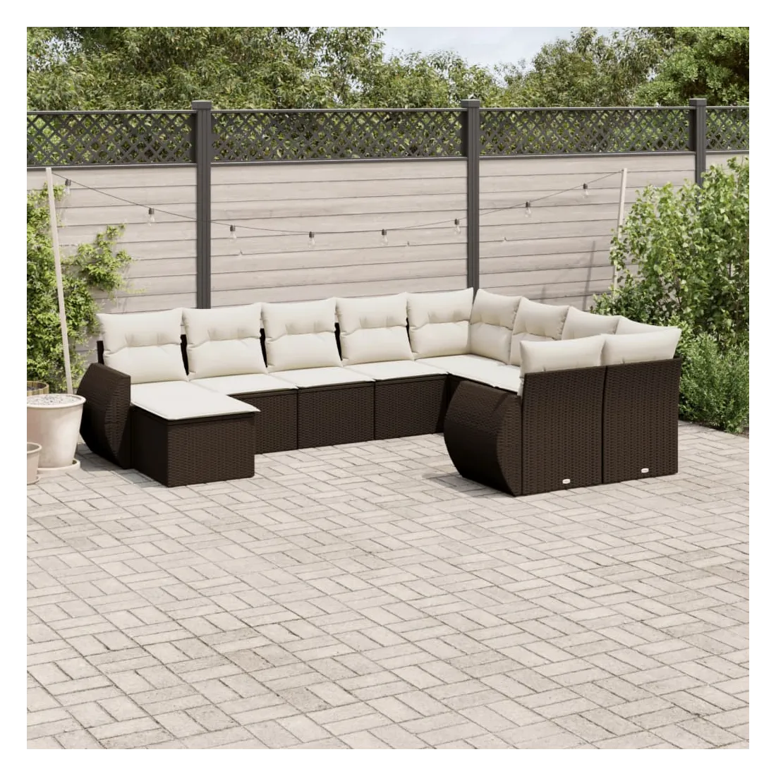 Salon de jardin 10 pcs avec coussins marron résine tressée