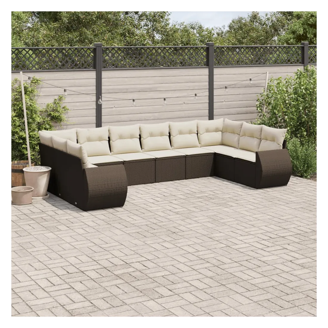 Salon de jardin 10 pcs avec coussins marron résine tressée